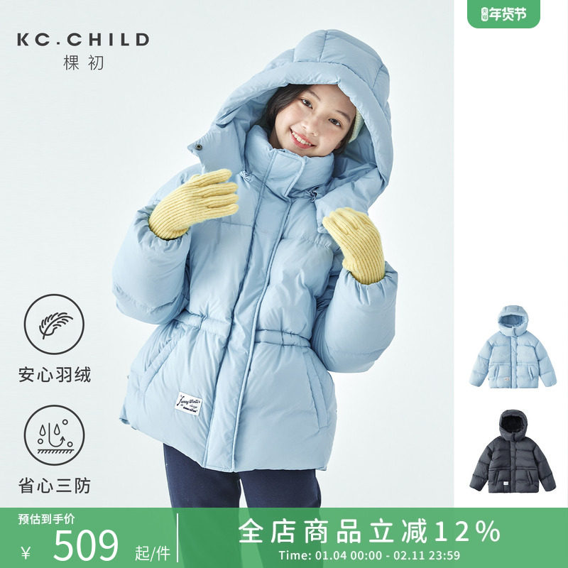 棵初2025年冬季新款亲子中大女童连帽羽绒服三防面料蓬松保暖外套