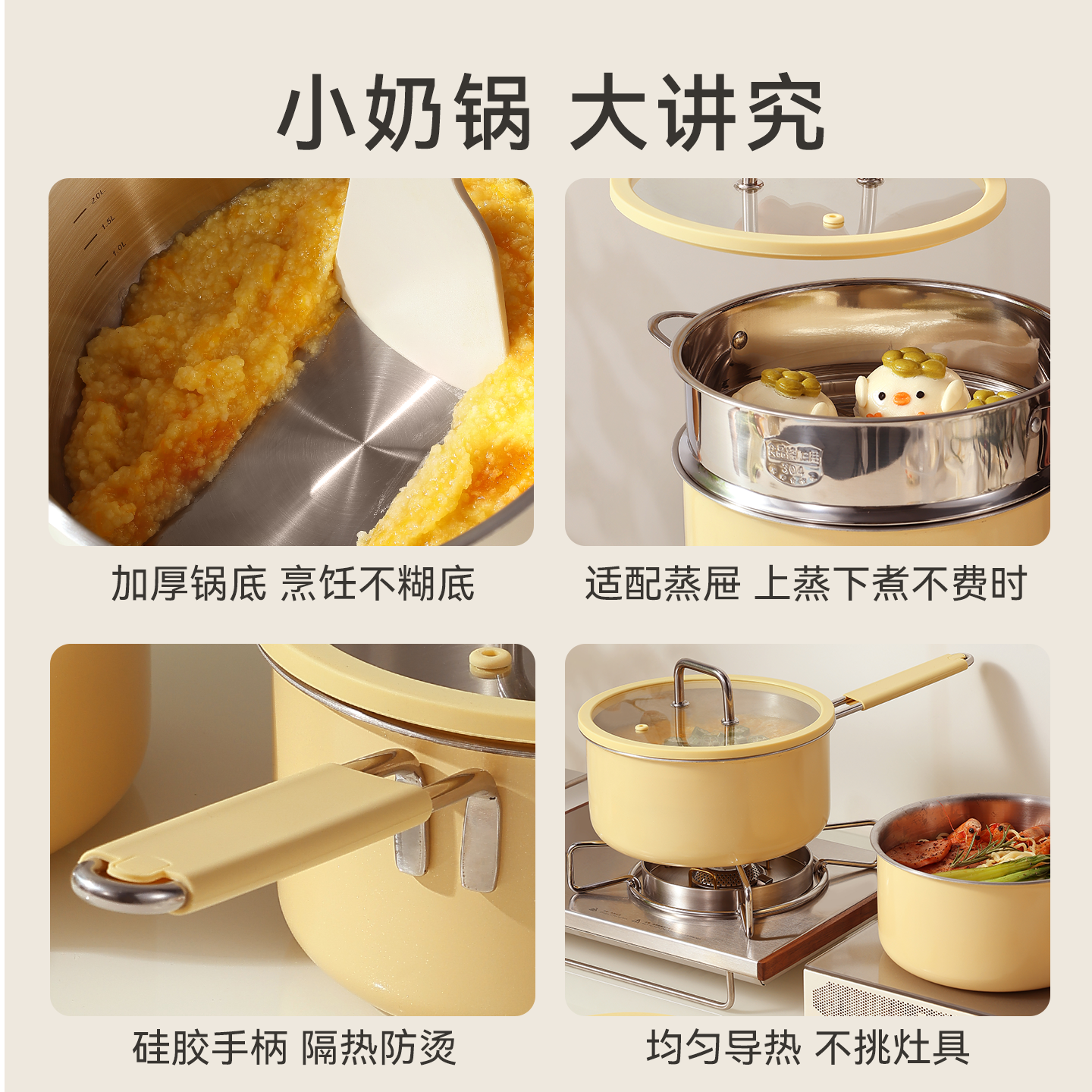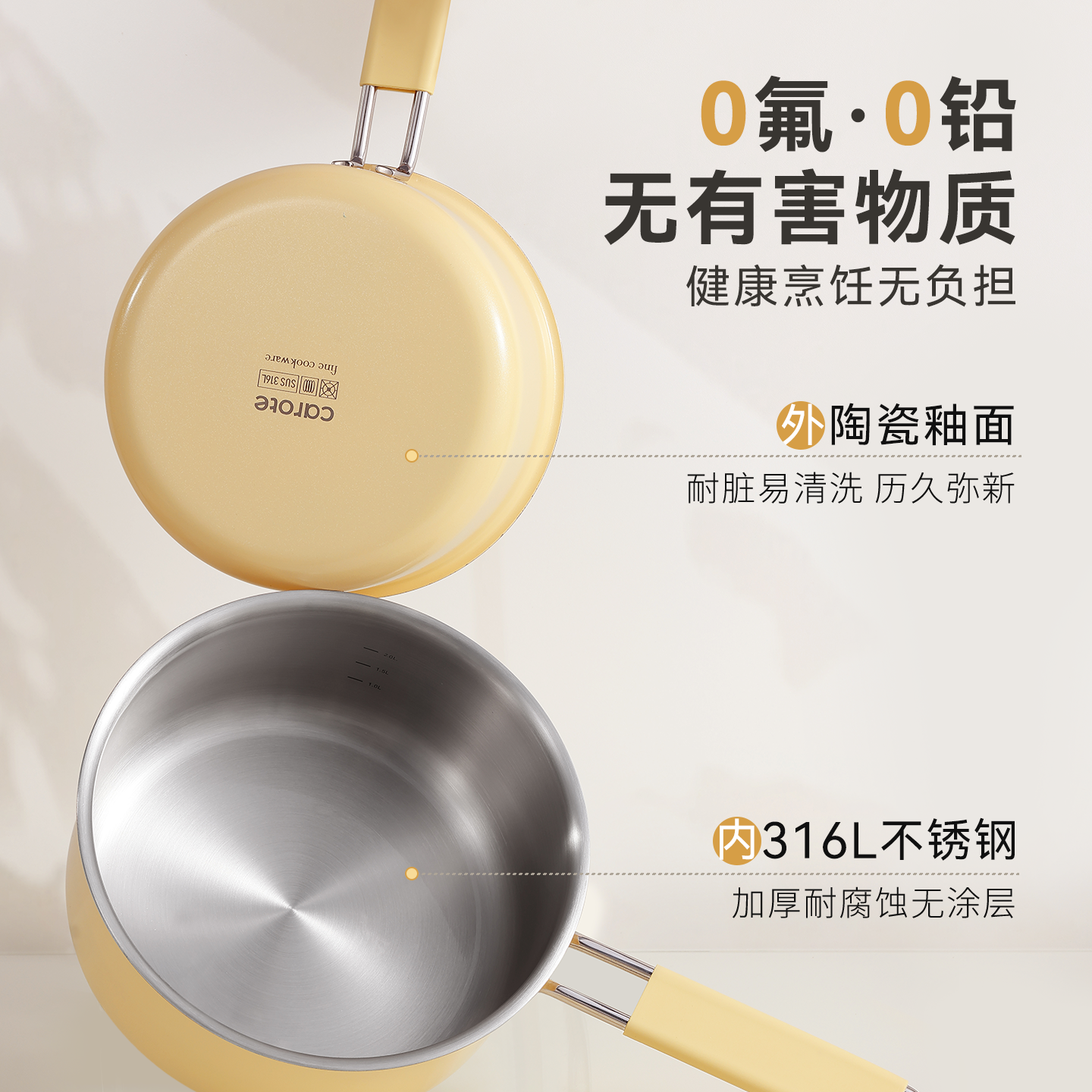 卡罗特奶锅辅食锅316L不锈钢小锅婴儿宝宝无涂层蒸煮锅泡面锅汤锅