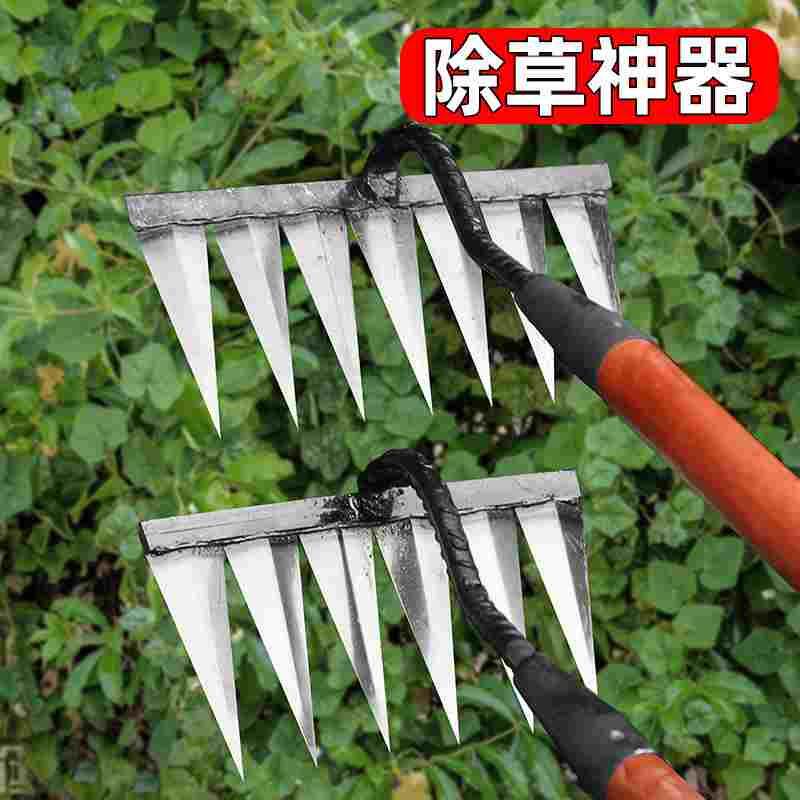 加厚锄头除草耙子农具锄草锄根翻地松土神器六齿钉耙钢耙农用工具