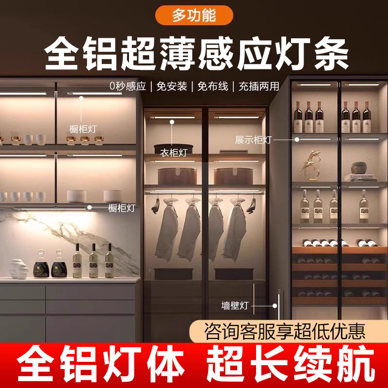 LROLTEF磁吸感应灯带自粘无线充电led免插电展示厨房橱柜衣柜灯条