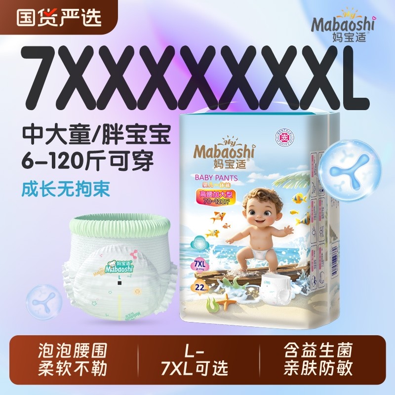 妈宝适大尺码全包臀胖宝L-7XL婴儿尿不湿云柔透气拉拉裤中大童