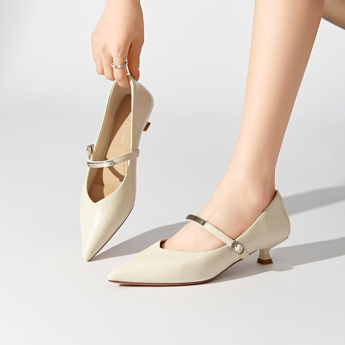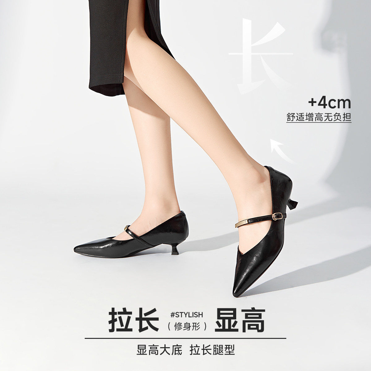 戈美其商场同款尖头玛丽珍鞋女2026春季新款一字带不累脚细跟单鞋