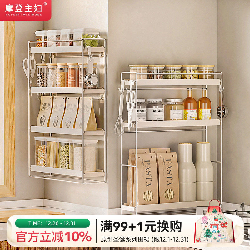 摩登主妇厨房置物架壁挂免打孔调料架多功能盐调味罐调料品收纳架