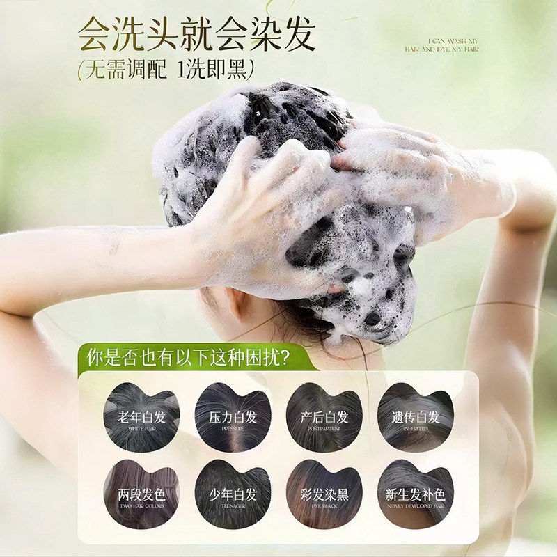 正品袋装植物泡泡染发剂遮盖白发自己在家染发膏纯不沾头皮黑茶色