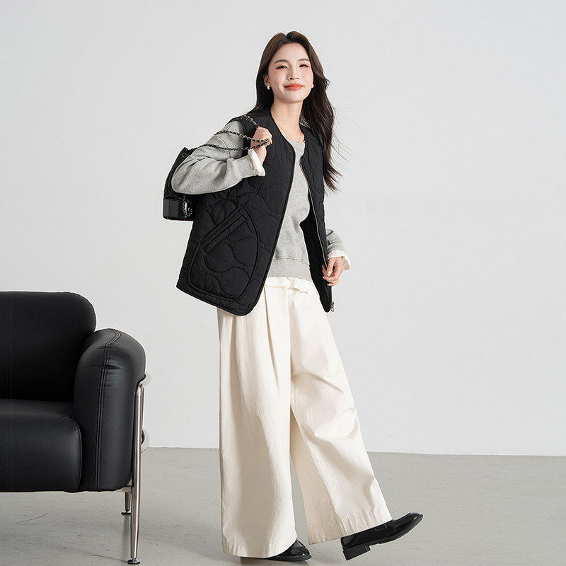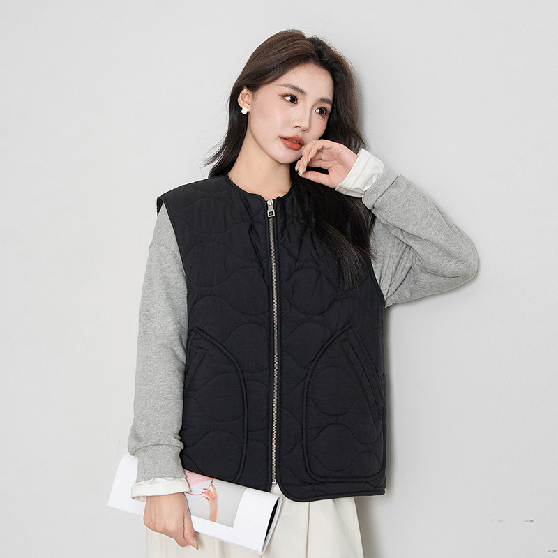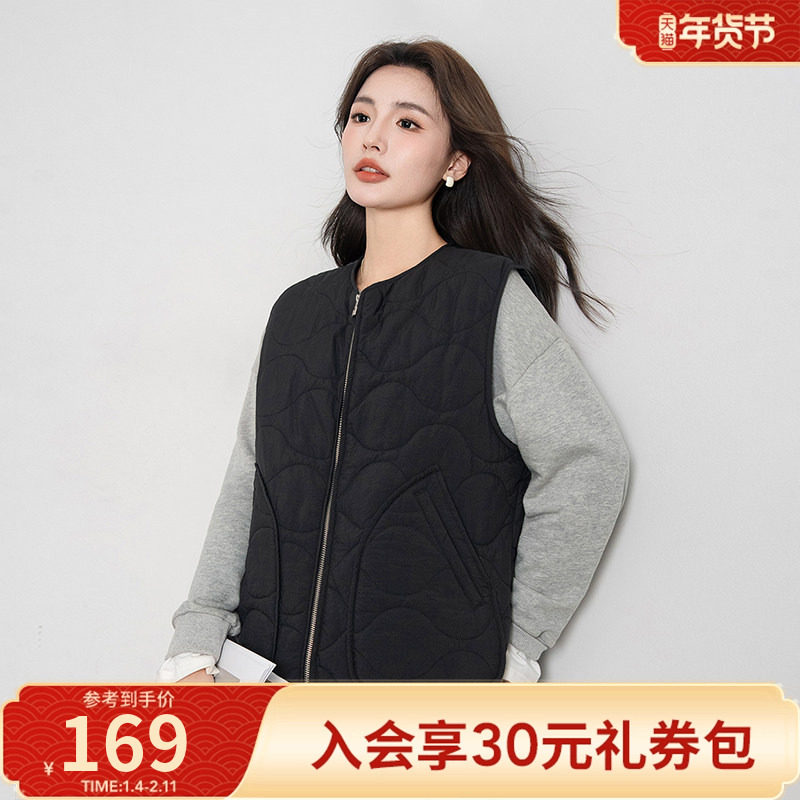 热风女士时尚文艺复古宽松叠穿夹棉马甲秋冬保暖百搭休闲简约外套