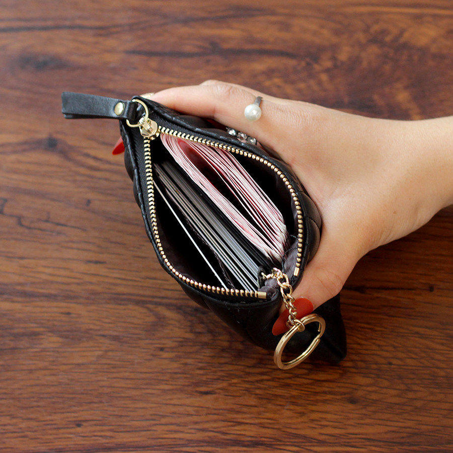 稻草人卡包女士新款证件女式牛皮小巧真皮拉链钱夹小众银行卡钱包