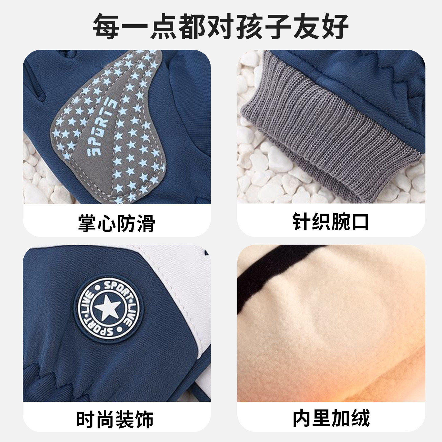 儿童手套冬季男童加绒保暖防风防水男大童触屏骑行滑雪防寒玩雪