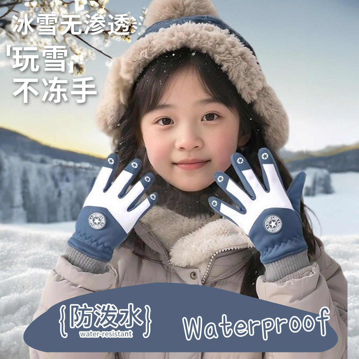 加绒防泼水儿童保暖手套防风防寒秋冬季5-15岁男女童大童滑雪玩雪