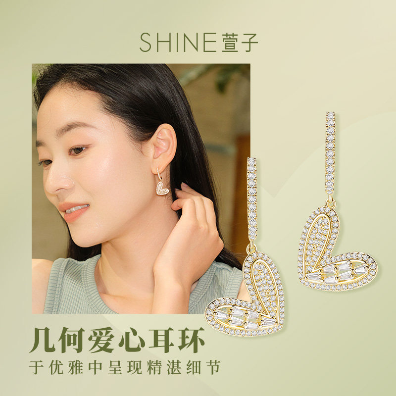 SHINE萱子饰品爱心短款桃心独特耳环闪耀甜美高级感
