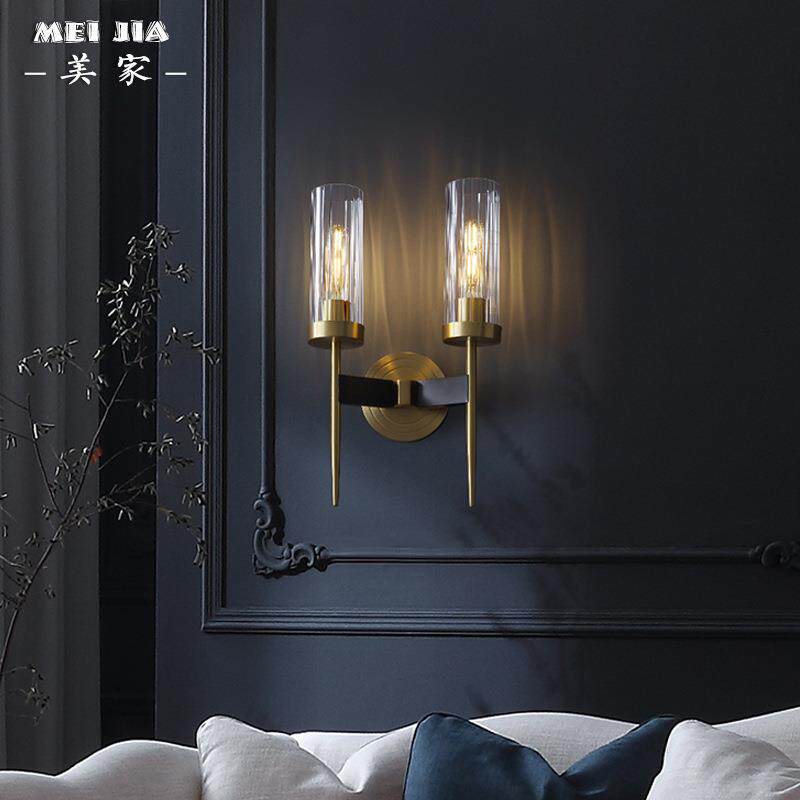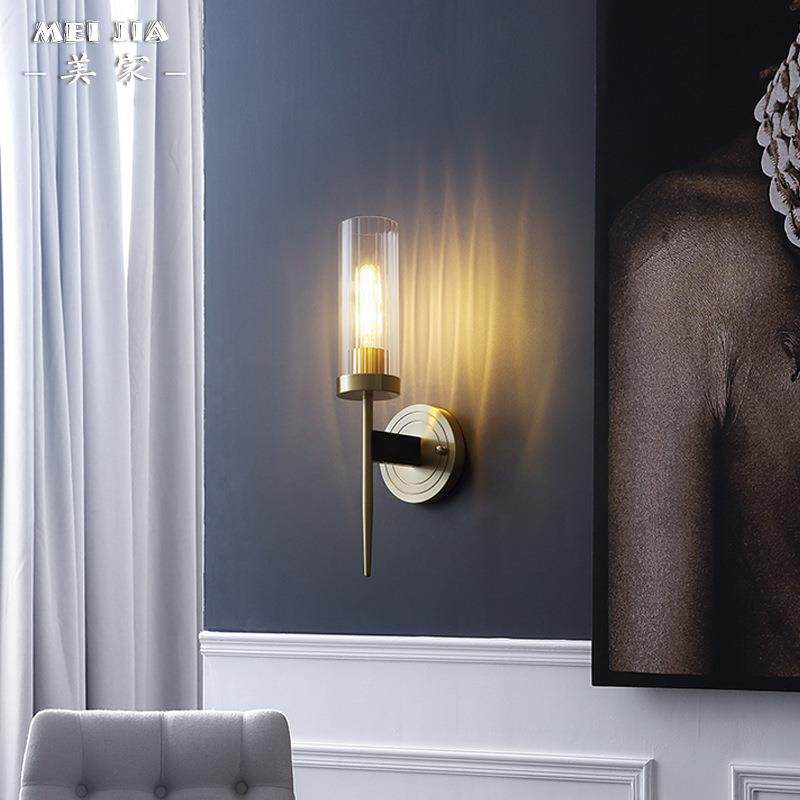 美式简约全铜壁灯复古卧室房间床头壁灯复式楼过道楼梯阳台壁灯具