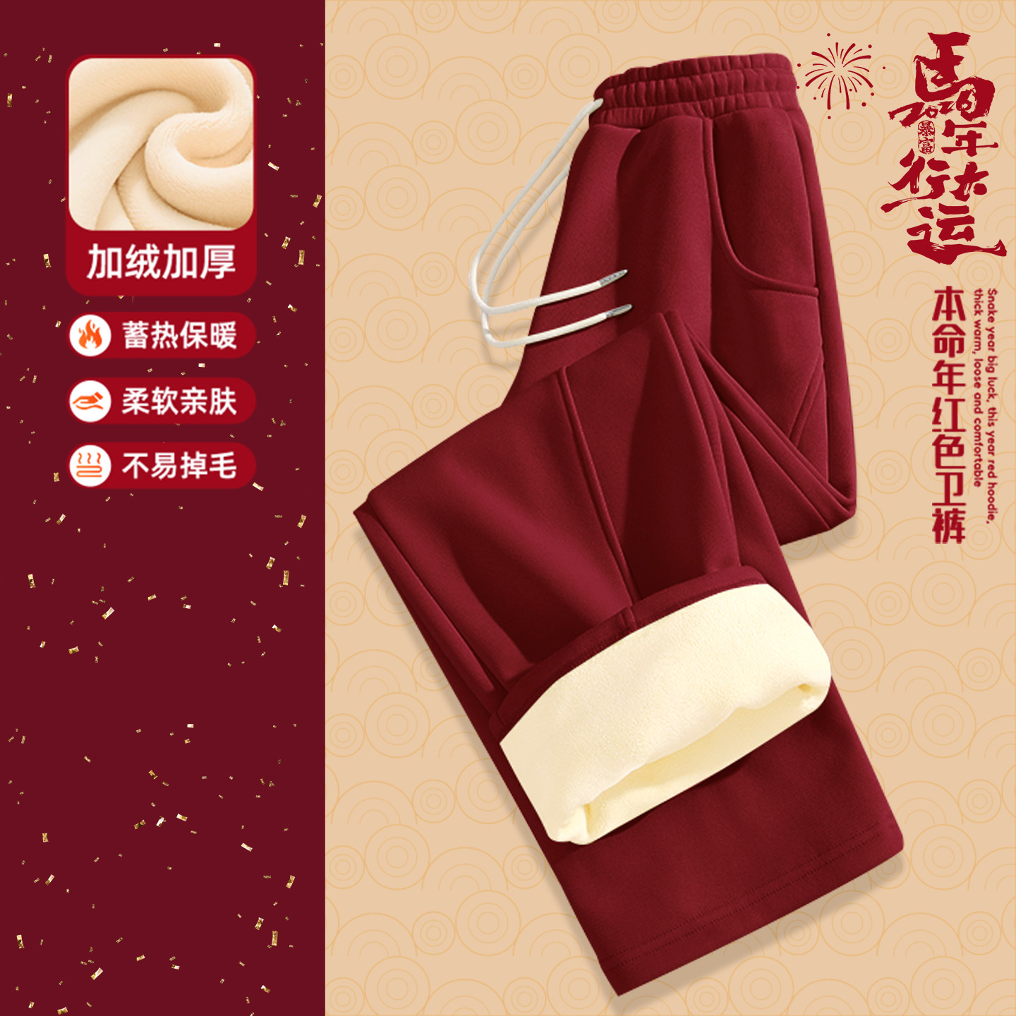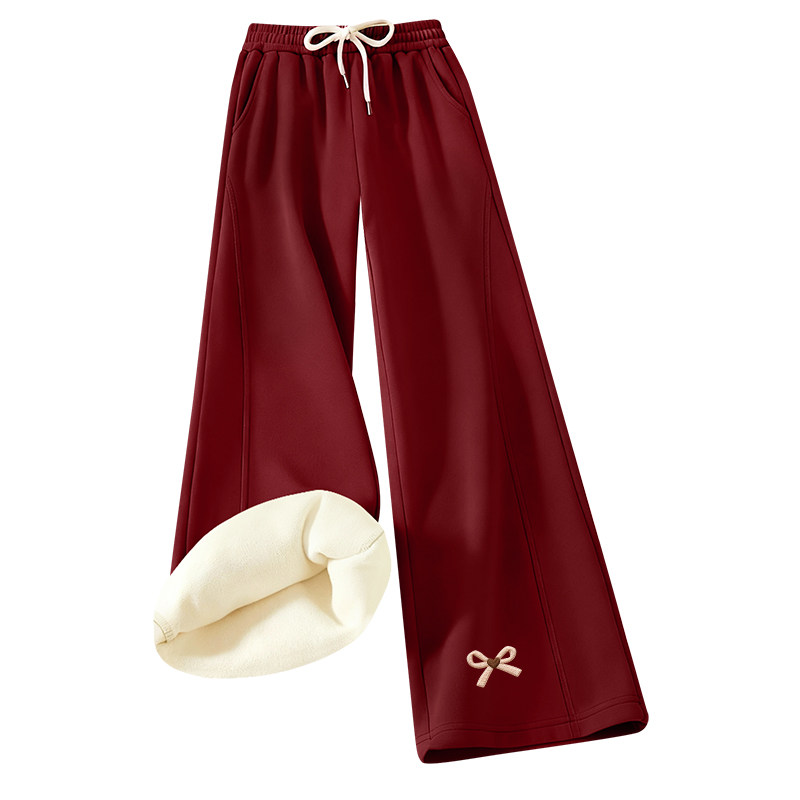 都市丽人酒红色裤子女2026新款今年流行爆款冬巨好看加绒阔腿裤Y
