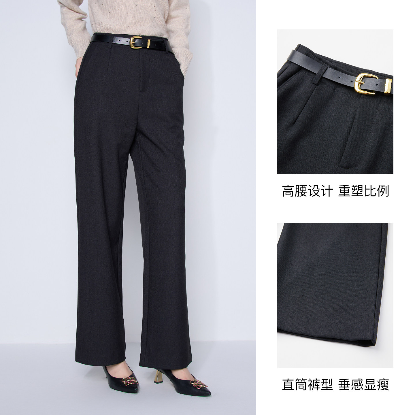 MissWiss直筒裤子女2025新款长裤休闲高腰收腹提臀黑色垂感阔腿裤