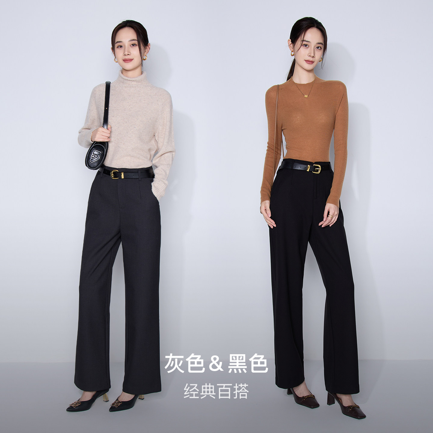 唐狮DESSO秋冬新款糯米裤高腰垂感宽松加绒直筒阔腿裤5