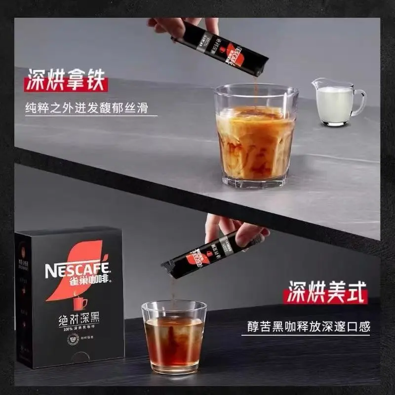 雀巢咖啡绝对深黑散装速溶美式黑咖啡深烘咖啡豆烘焙好喝盒装拿铁