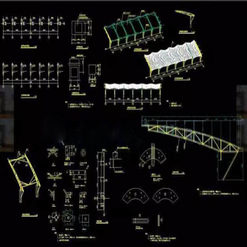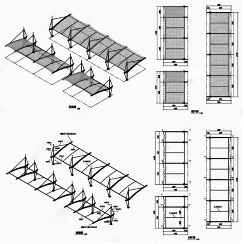 膜结构设计CAD图纸汽车棚自行车棚景观棚遮阳雨棚张拉膜CAD施工图
