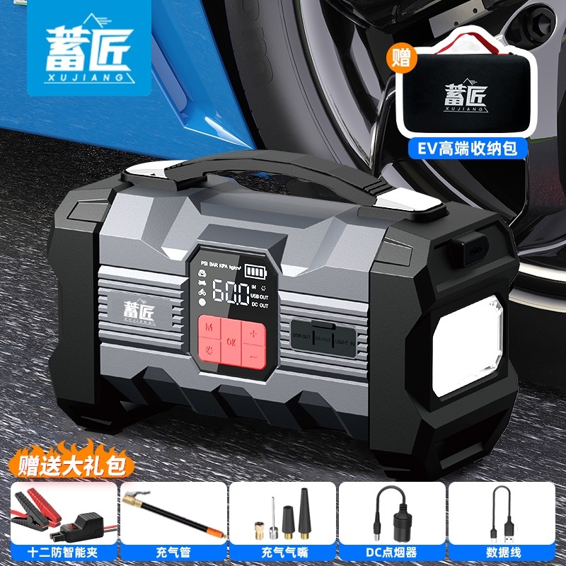 蓄匠汽车应急启动电源充气泵一体机12V车载紧急强启多功能搭电宝