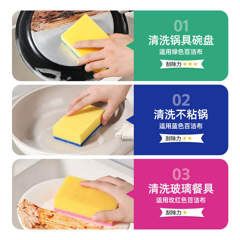 美丽雅百洁布厨房专用家用洗碗海绵擦吸水不易粘油清洁刷锅海绵块