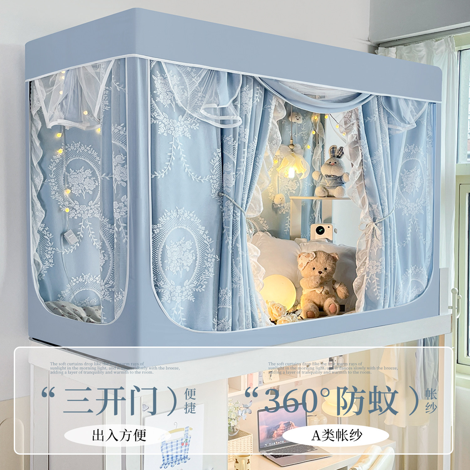 学生宿舍专用蚊帐全包一体式全遮光大学生上铺下铺通用防蚊伸缩