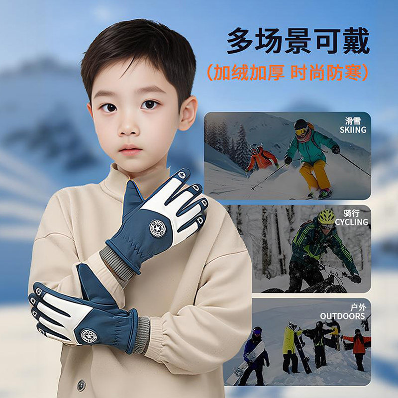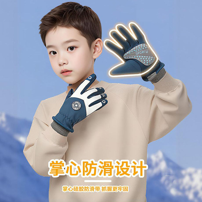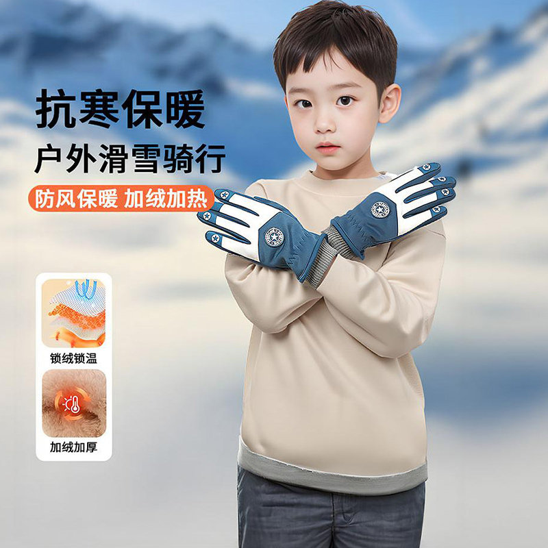 儿童手套玩雪防水冬季防滑保暖加绒学生骑行分指手套滑雪防寒神器