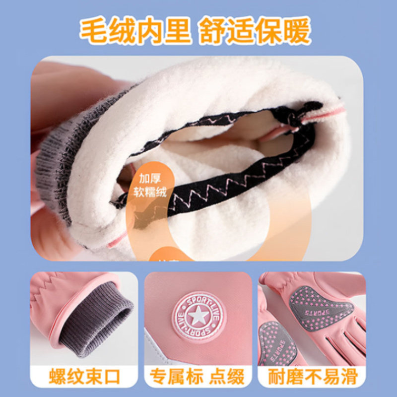 手套女冬季可爱加绒加厚保暖儿童2024新款学生防寒触屏露指男手套