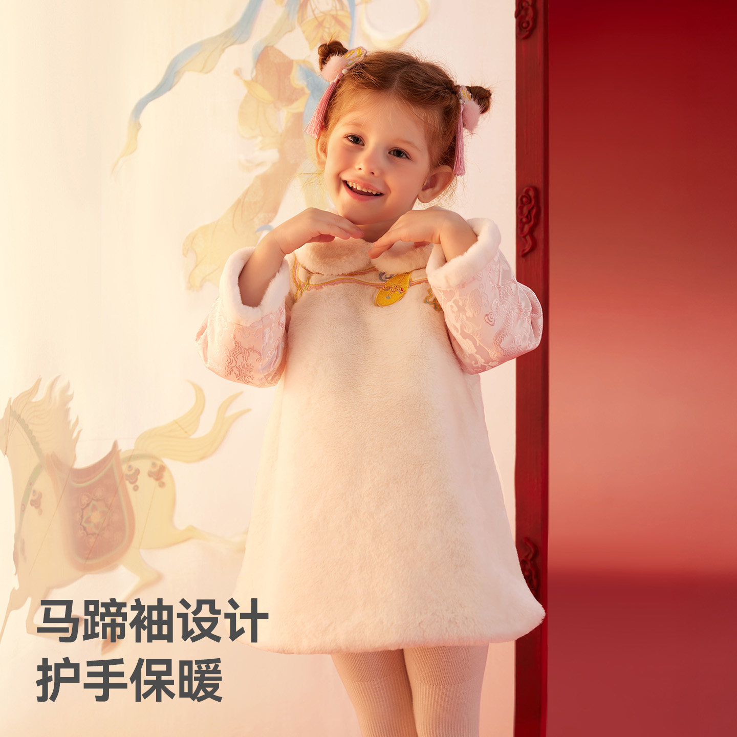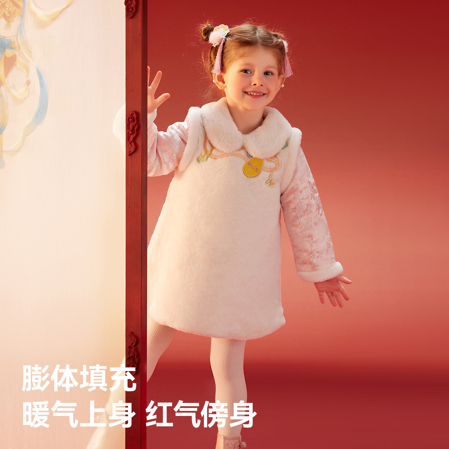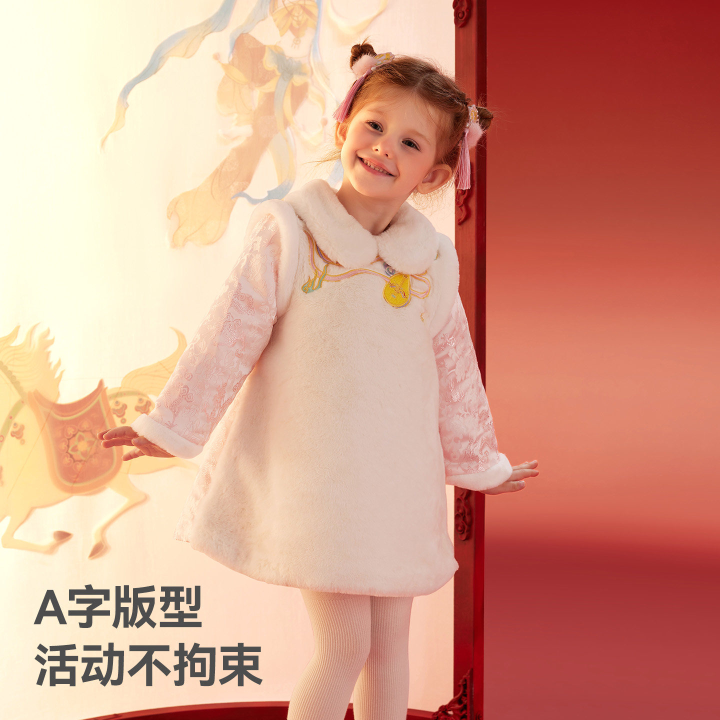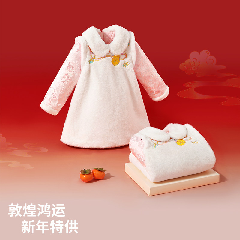 贝肽斯儿童国风连衣裙冬季女宝宝新中式加绒公主裙假两件拜年裙子
