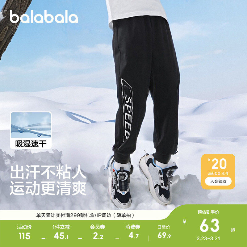 巴拉巴拉童装男童裤子儿童速干运动裤2026夏装薄款大童女童束脚裤