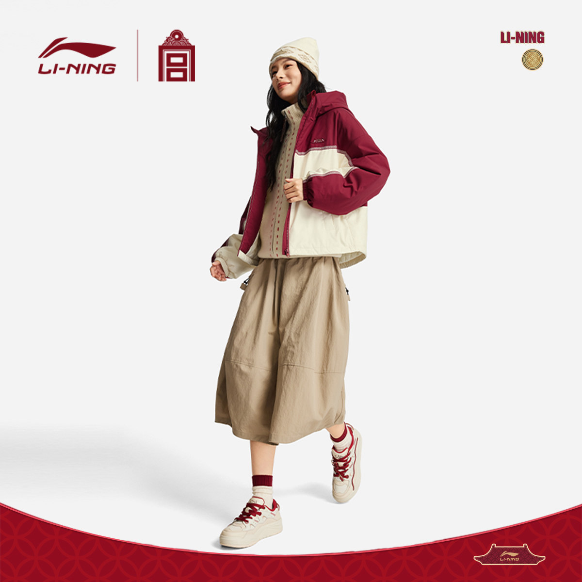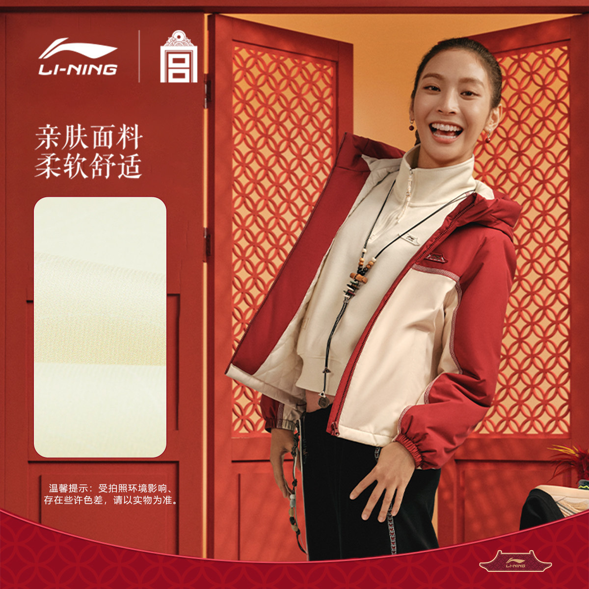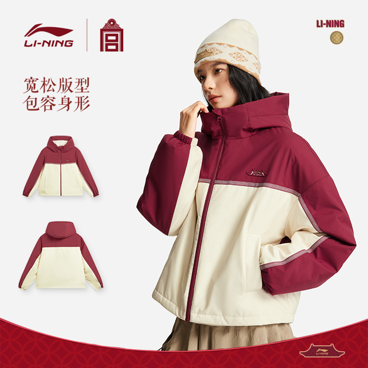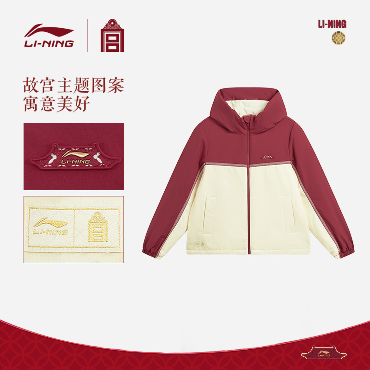 李宁中国文化系列故宫联名棉服女春季2026新款外套红色马年运动服