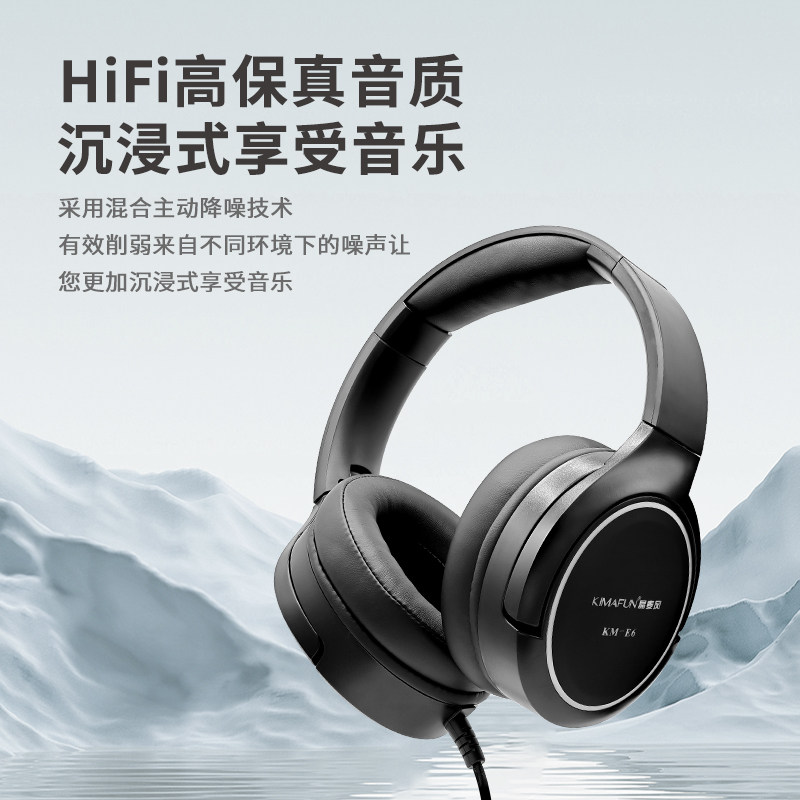 晶麦风E6主动降噪头戴有线耳机HiFi立体音效专业直播监听有线耳机