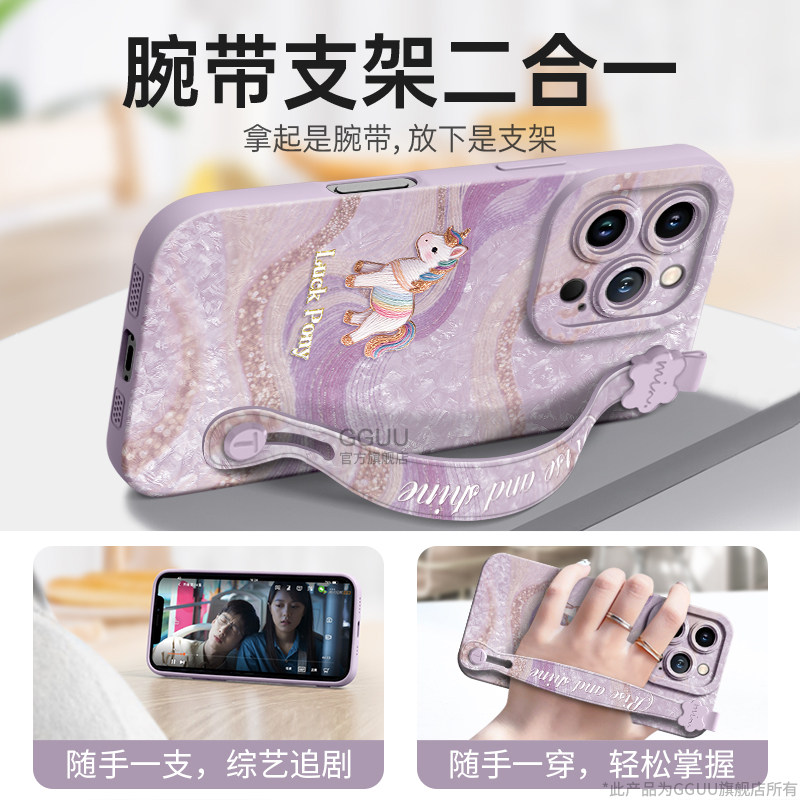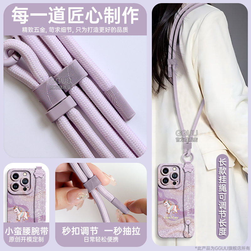 GGUU适用苹果16promax手机壳iphone16pro套plus新款16腕15挂绳14硅胶13可背带斜挎链12丝绸小马11女的pro年ip
