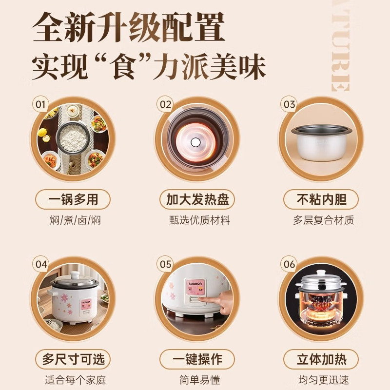 苏泊电饭煲迷你老式家用2-4人电饭锅不粘锅蒸煮一体4-5升大容量
