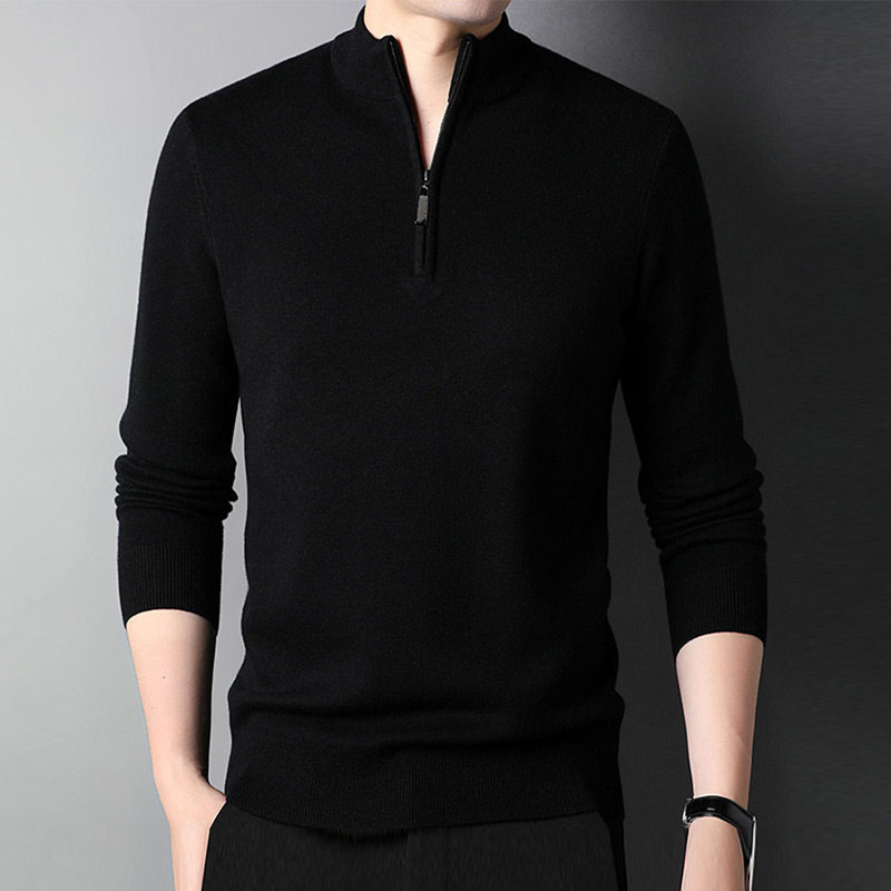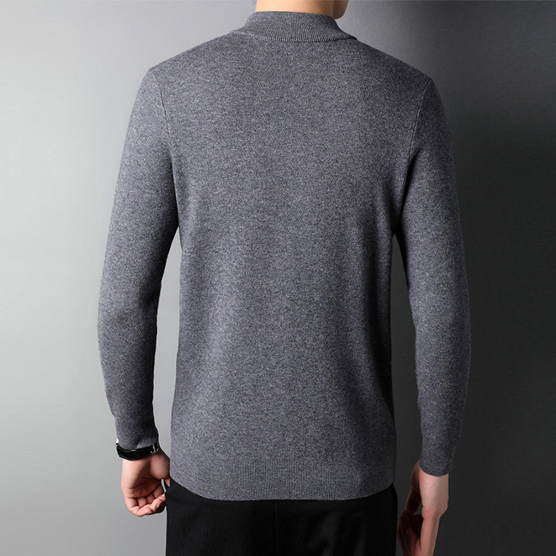 恒源祥2025秋冬新款毛衣男拉链领套头100纯羊毛衫长袖纯色针织衫
