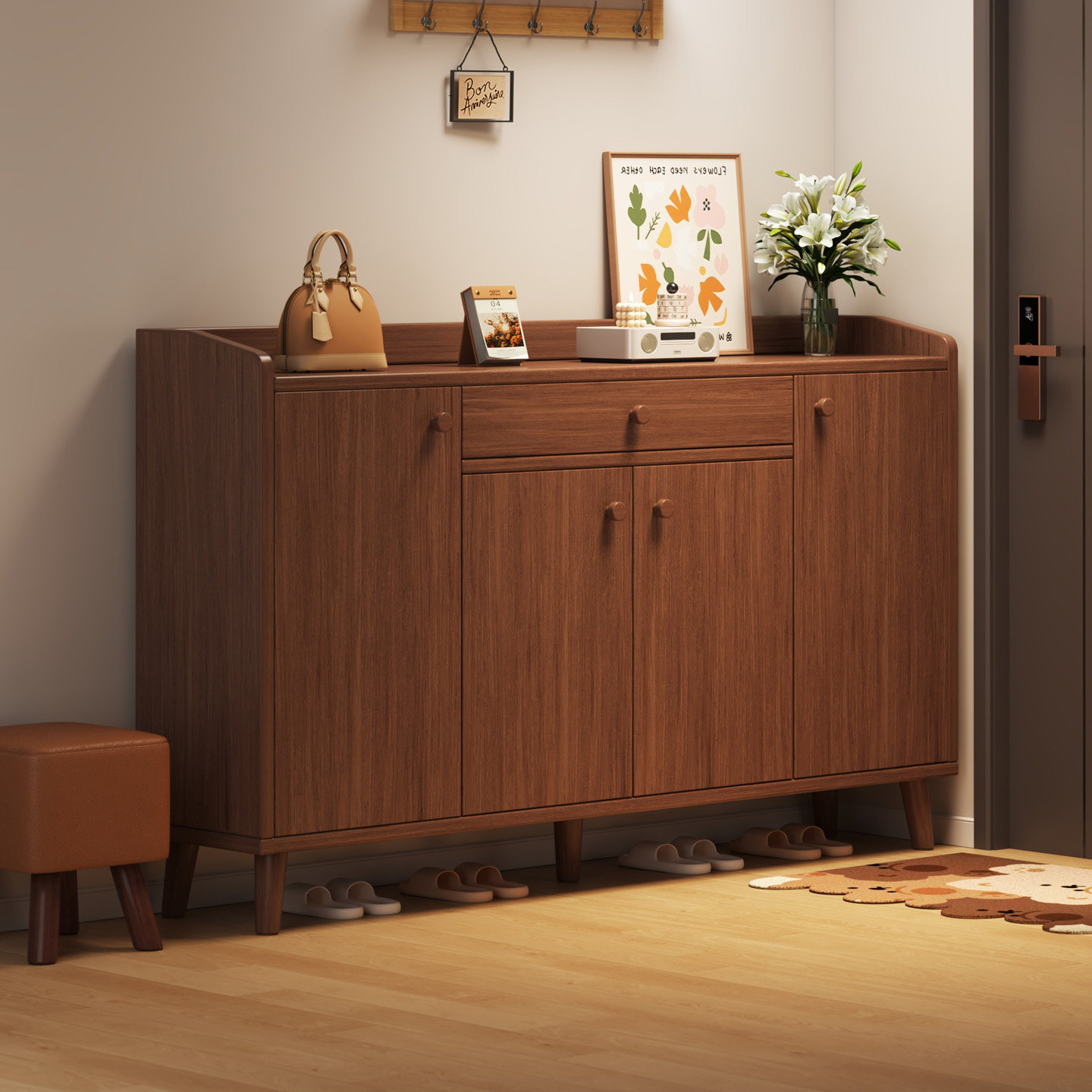 实木芯鞋柜家用门口入户玄关柜一体室内大容量多层收纳储物鞋架子