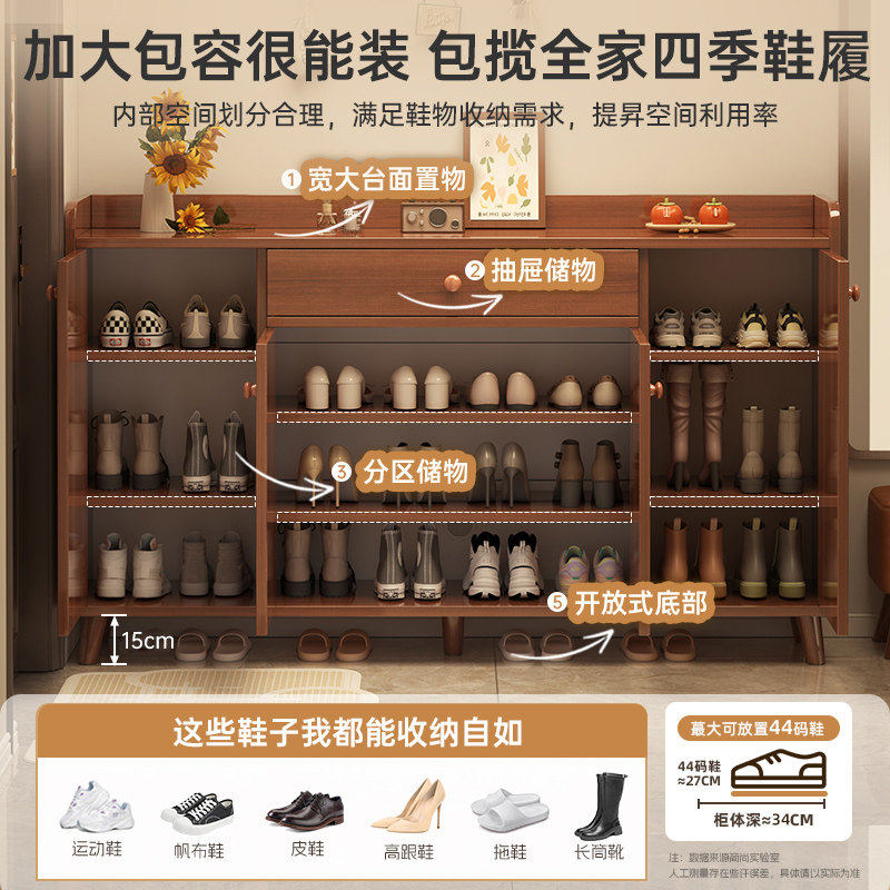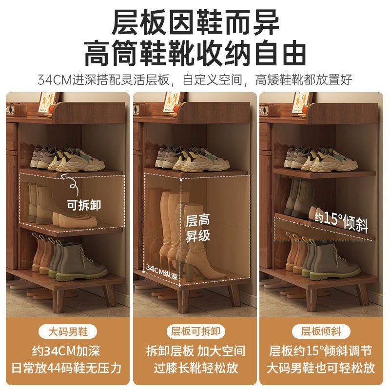 实木鞋柜家用入户门口玄关收纳柜靠墙一体多层储物柜超大容量鞋架