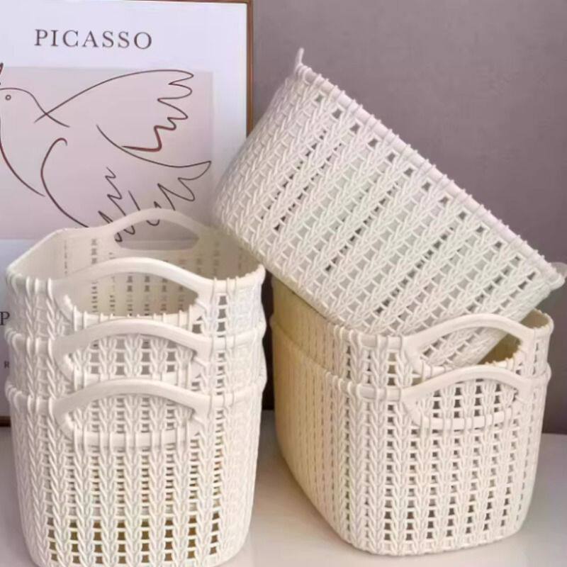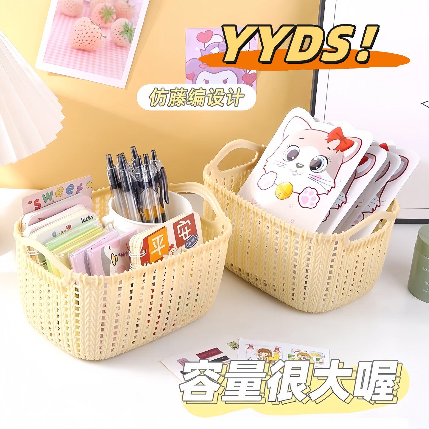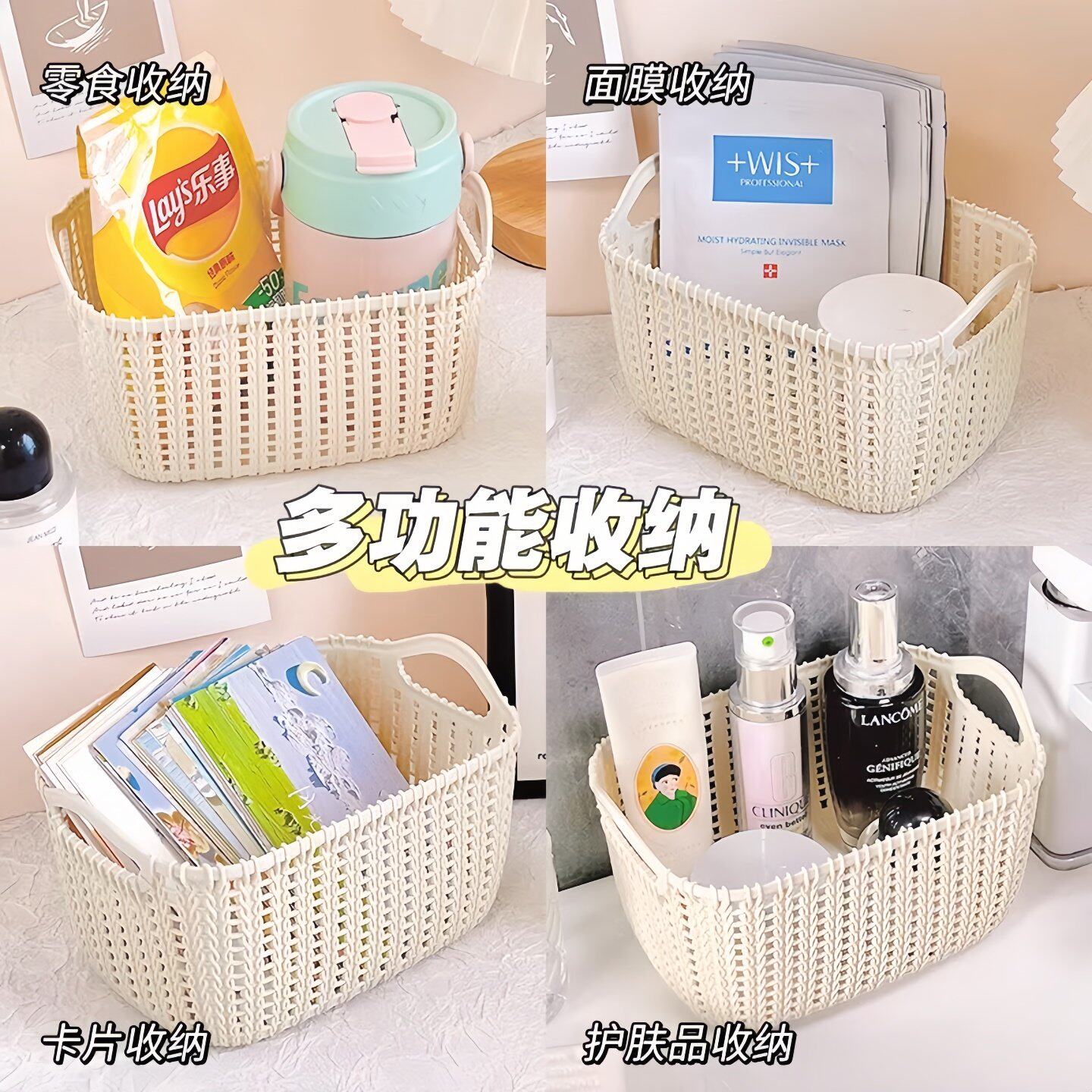 仿藤编收纳篮大容量桌面收纳盒学生宿舍杂物整理盒简约收纳篮子
