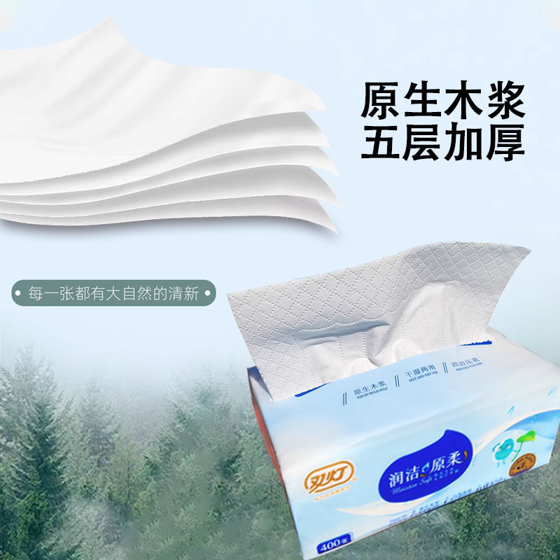双灯润洁原柔抽纸大包面巾纸5层加厚母婴餐巾纸10包正品大尺寸
