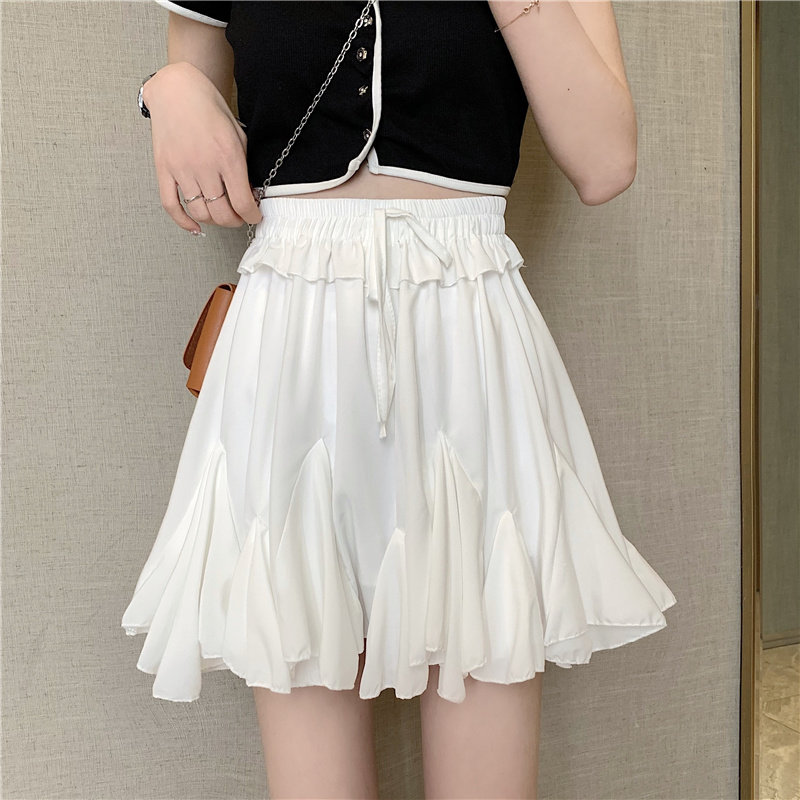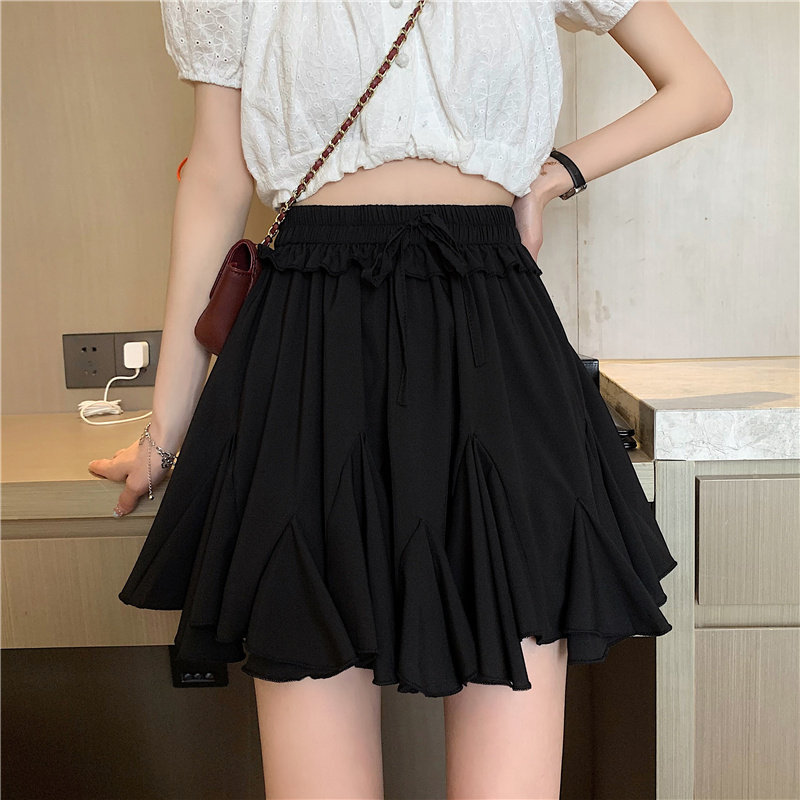 大码不规则雪纺半身裙女夏胖mm高腰显瘦荷叶边蓬蓬裙a字褶皱短裙