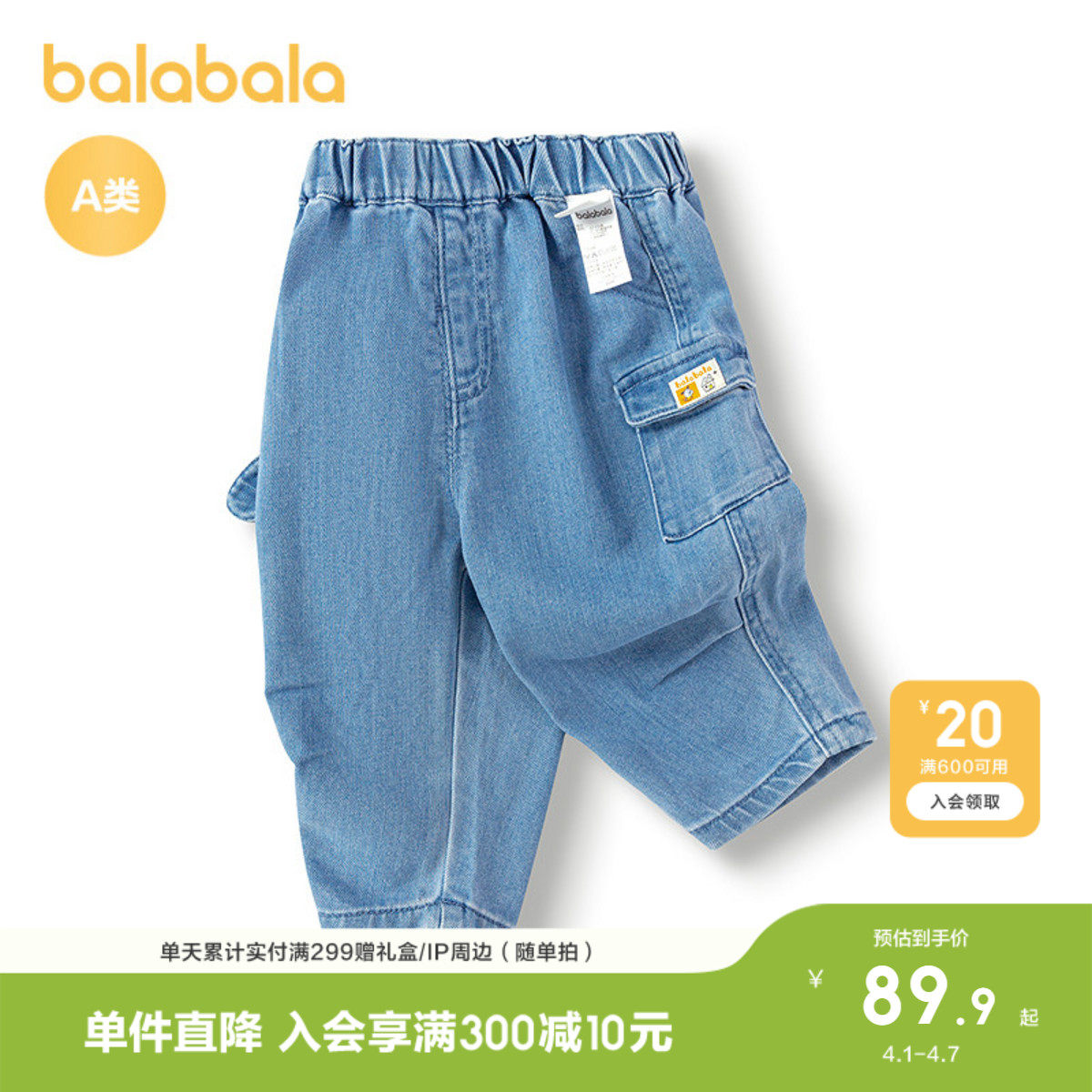 巴拉巴拉童装宝宝裤子男童婴儿牛仔裤小狗造型立体口袋可爱萌趣潮