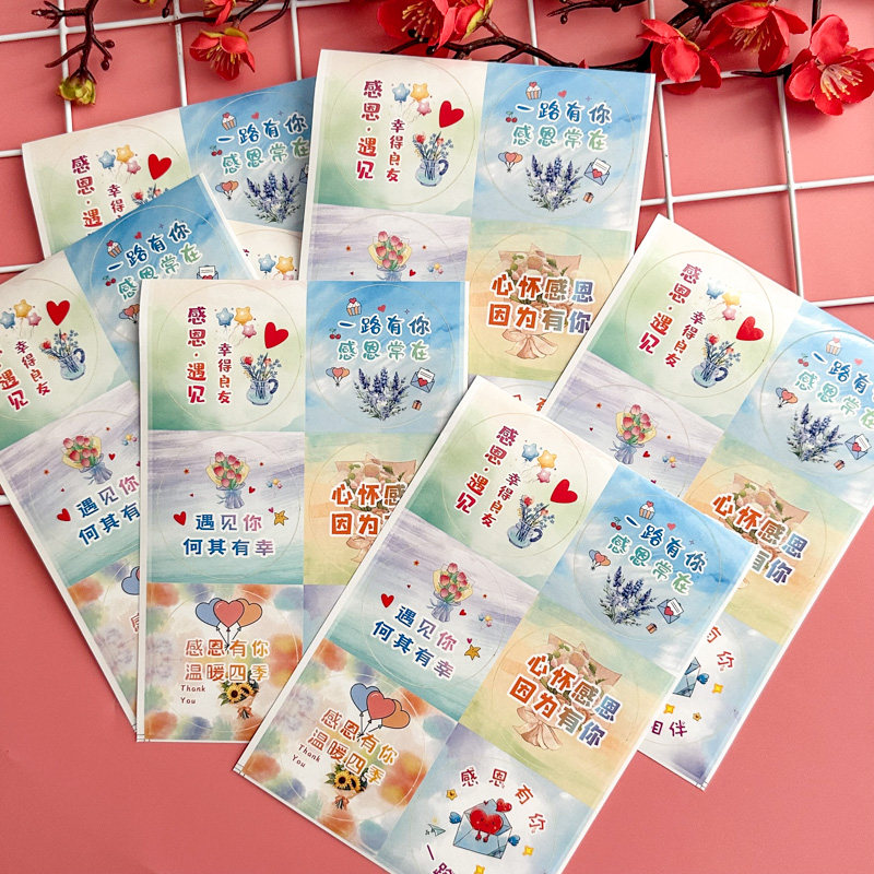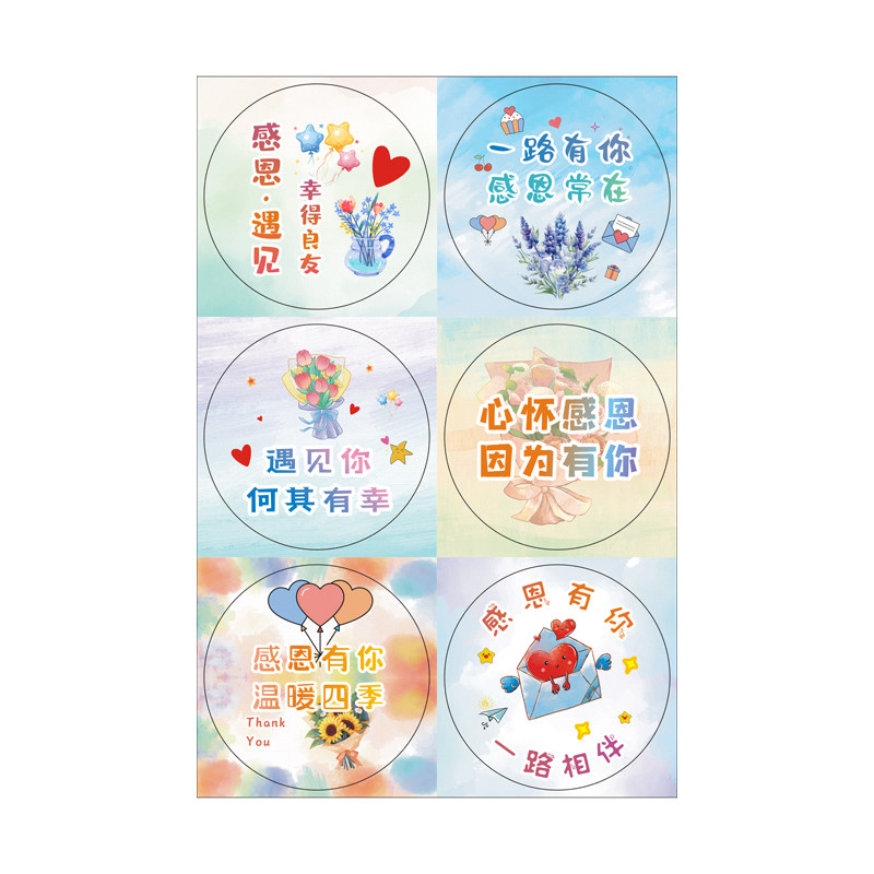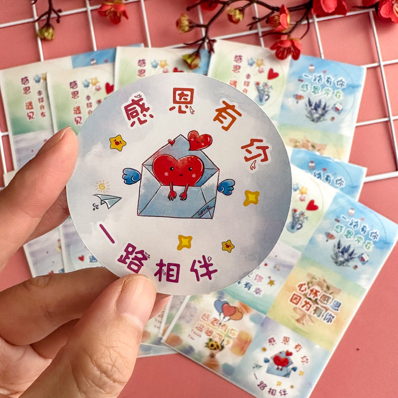 新款感恩节不干胶贴纸定制圆形礼物装饰封口贴幼儿园感谢有你烘焙包装袋礼品盒标签贴杯子小图案手账素材贴画