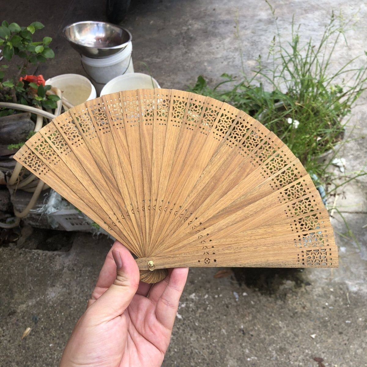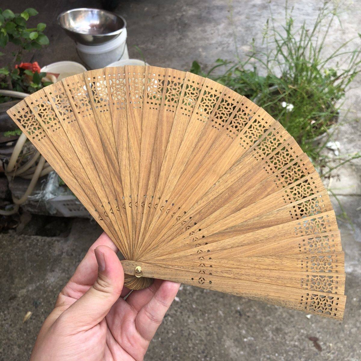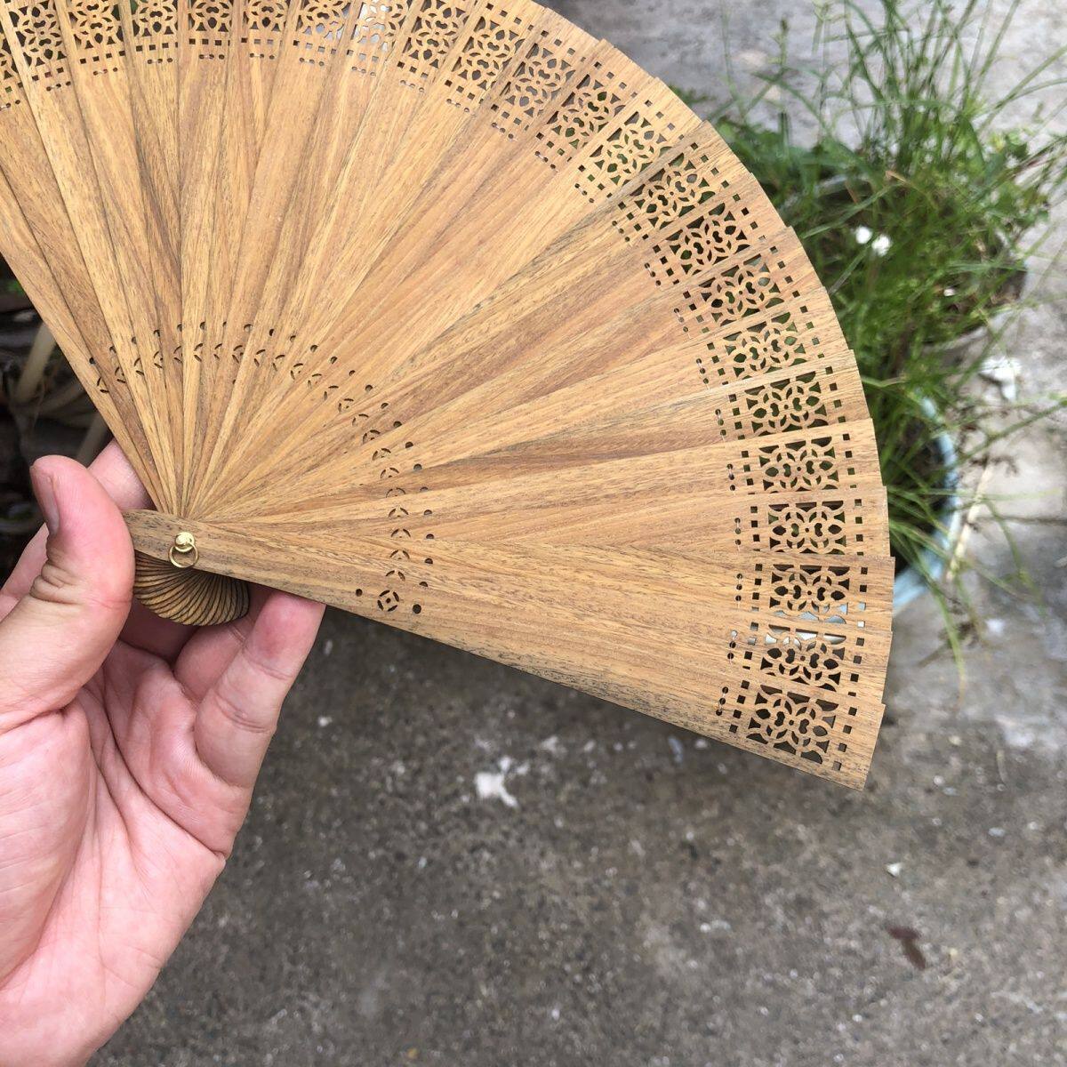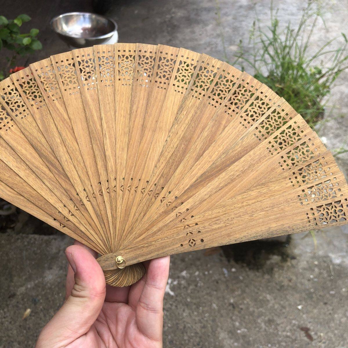 小号绿檀木清香苏扇扇子檀香扇折扇镂空中国古风拍照古典摆件随身