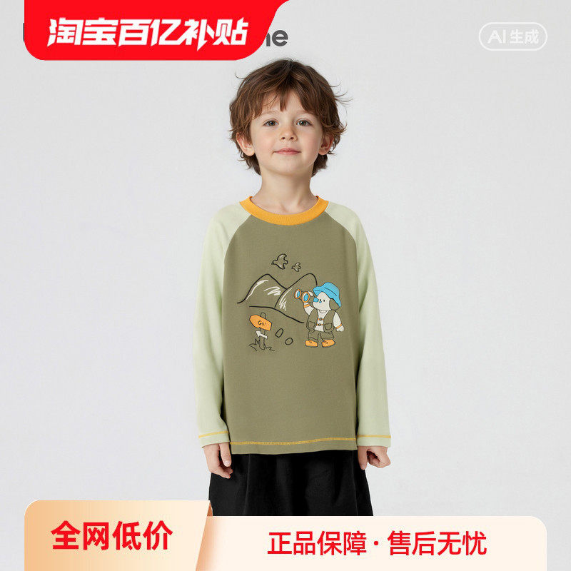巴拉巴拉童装儿童长袖t恤男女童2026新款春装纯棉上衣圆领插肩袖