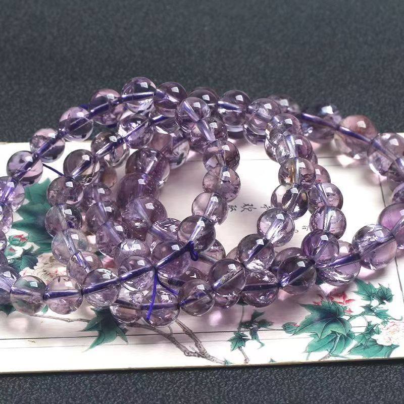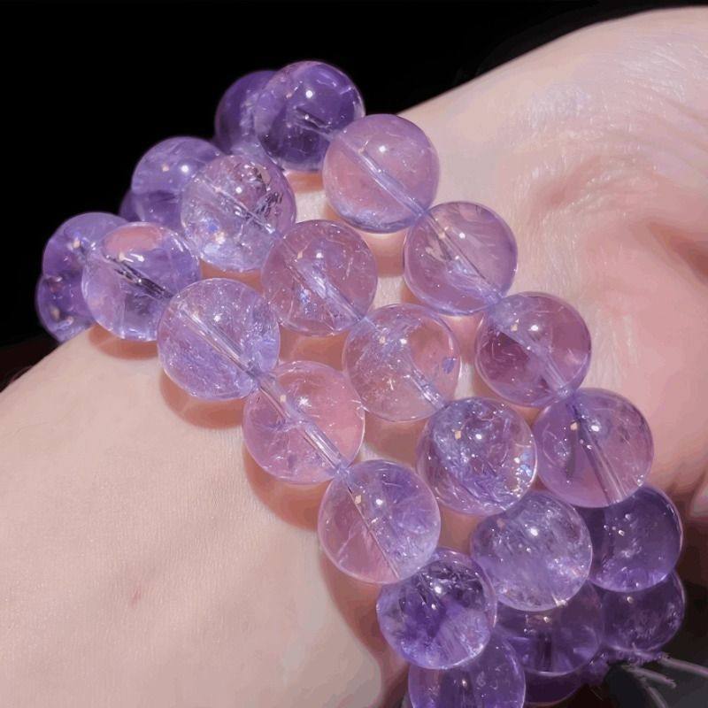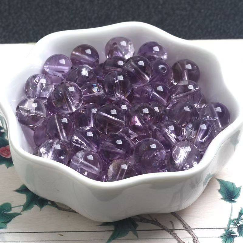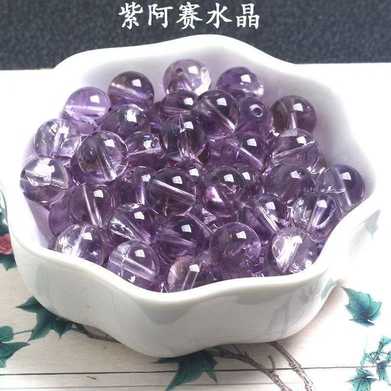 紫阿赛7A紫水晶散珠子手串男女士手链七彩冰裂胶花diy手工