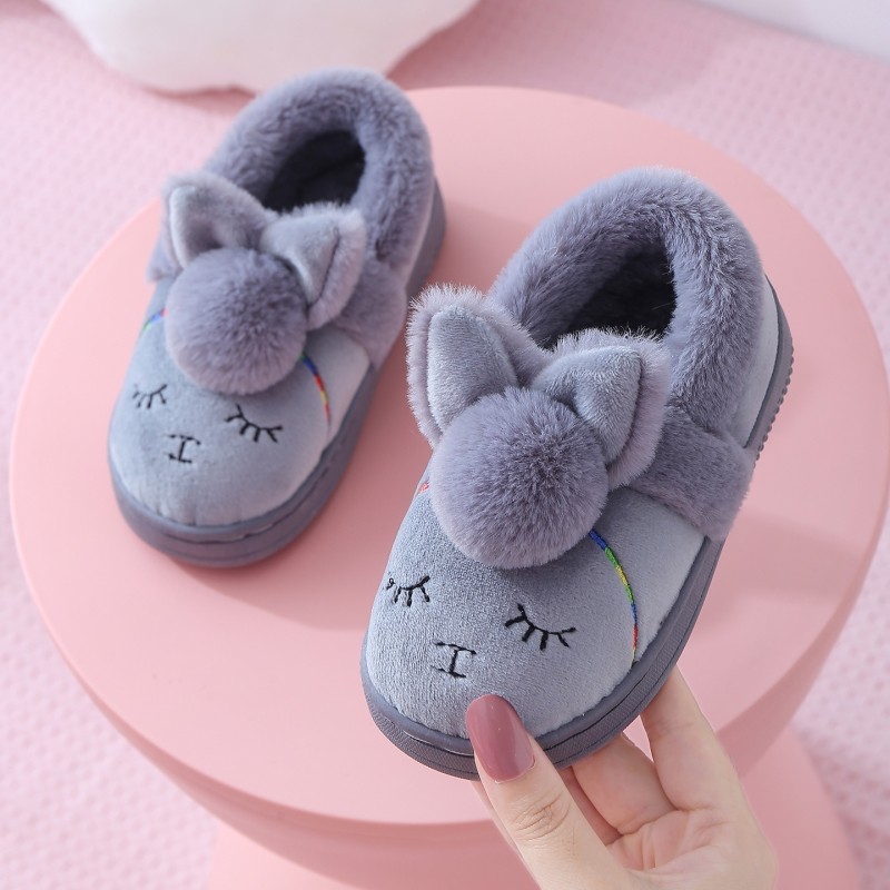 儿童棉鞋冬季居家保暖男童防滑加绒可爱风毛绒女童包跟棉拖鞋耐磨