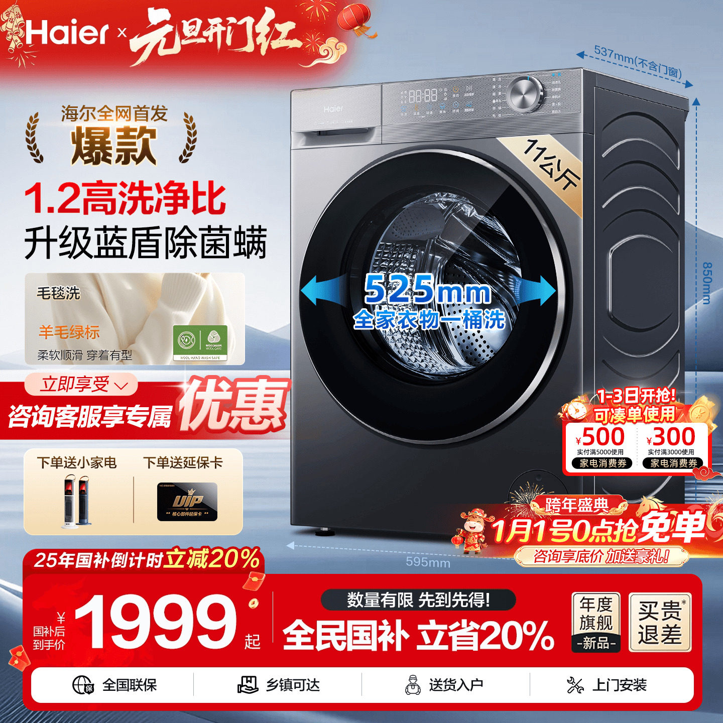 海尔新品洗衣机 11公斤大容量 可洗毛毯