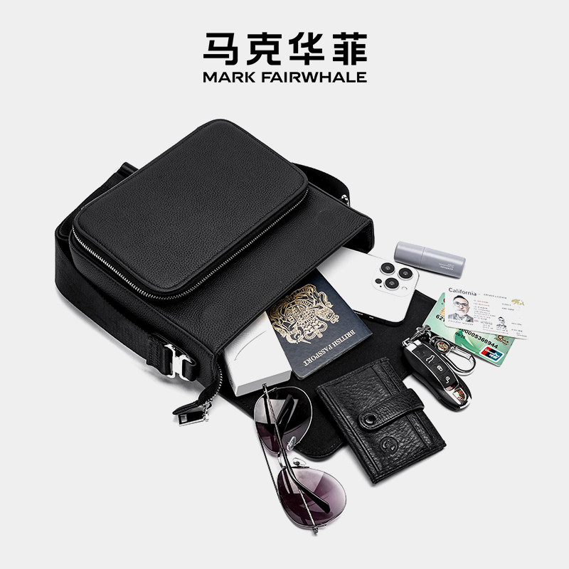 Mark Fairwhale/马克华菲新款男士真皮爸爸包商务通勤单肩斜挎包