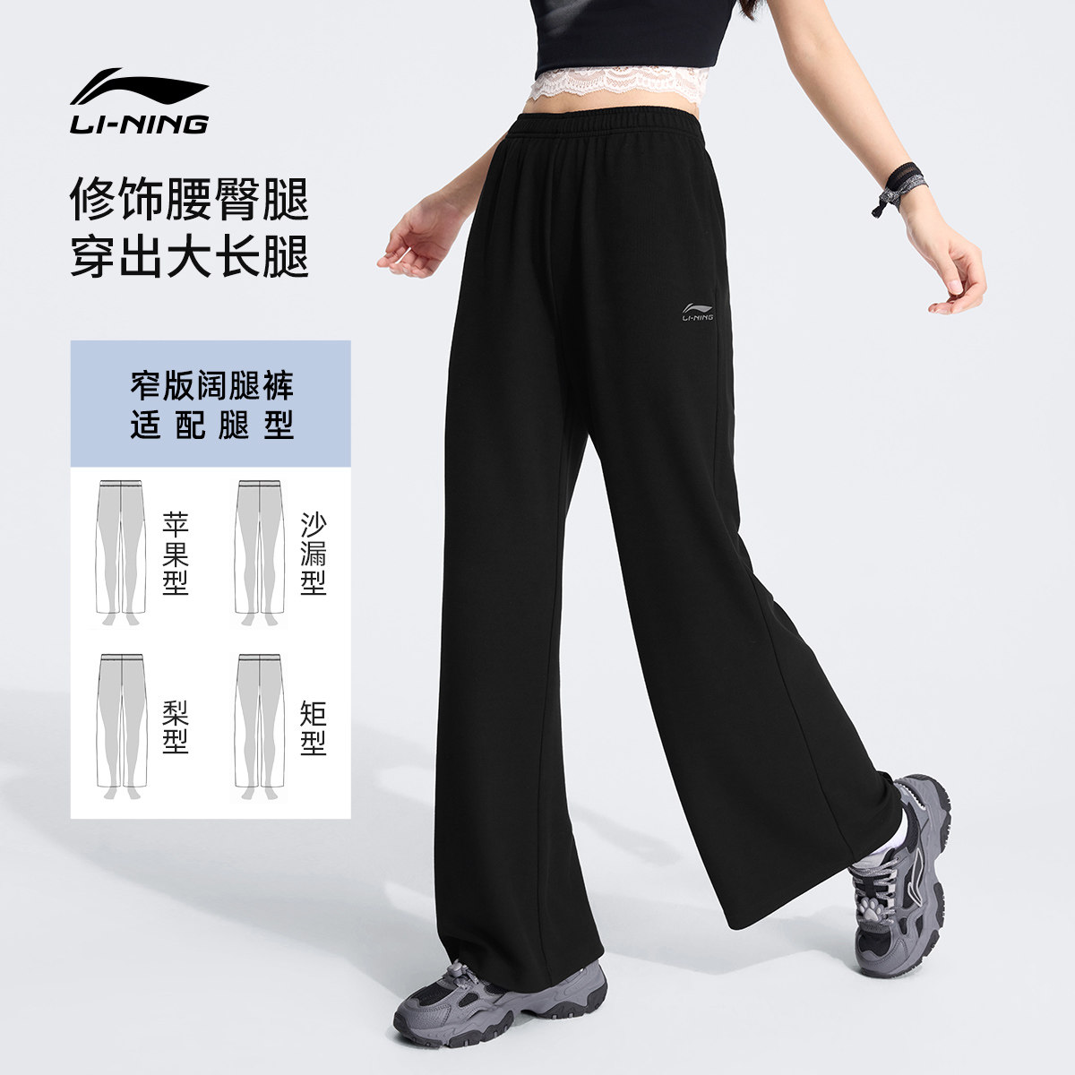 李宁C位裤丨窄版阔腿裤新款运动裤女休闲宽松夏季直筒垂感卫裤女