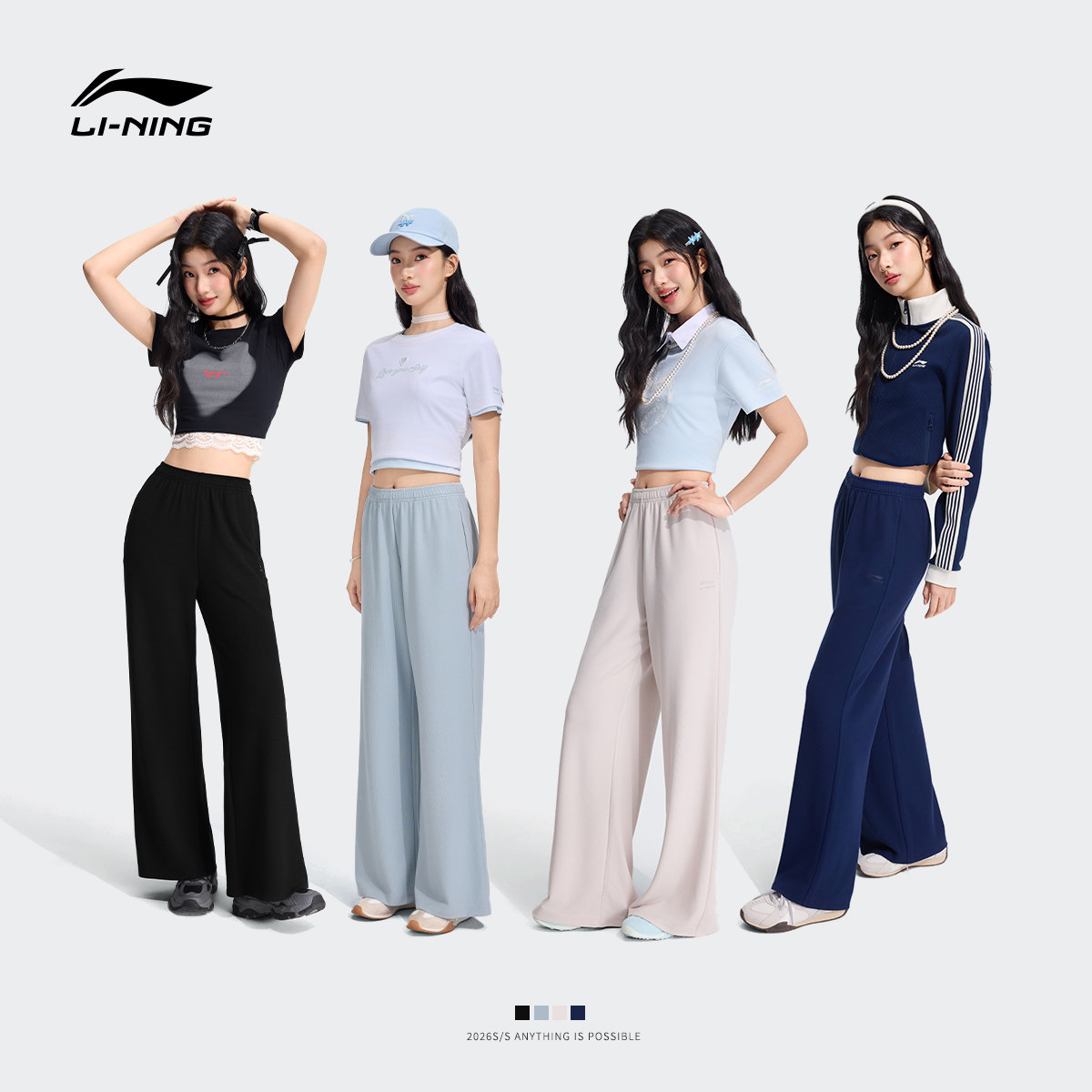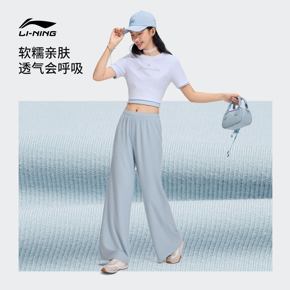 李宁奶芙裤丨阔腿裤直筒裤子女2026新款夏季薄款宽松卫裤运动长裤