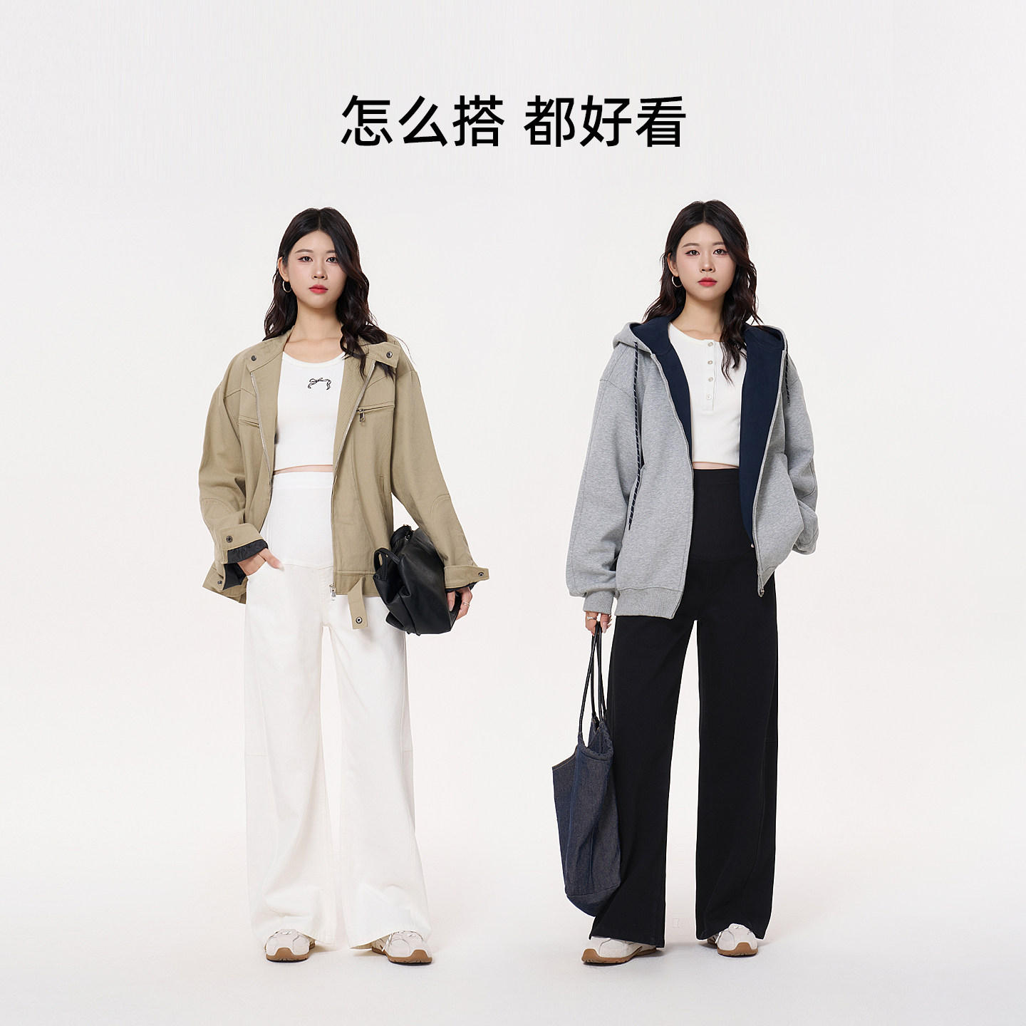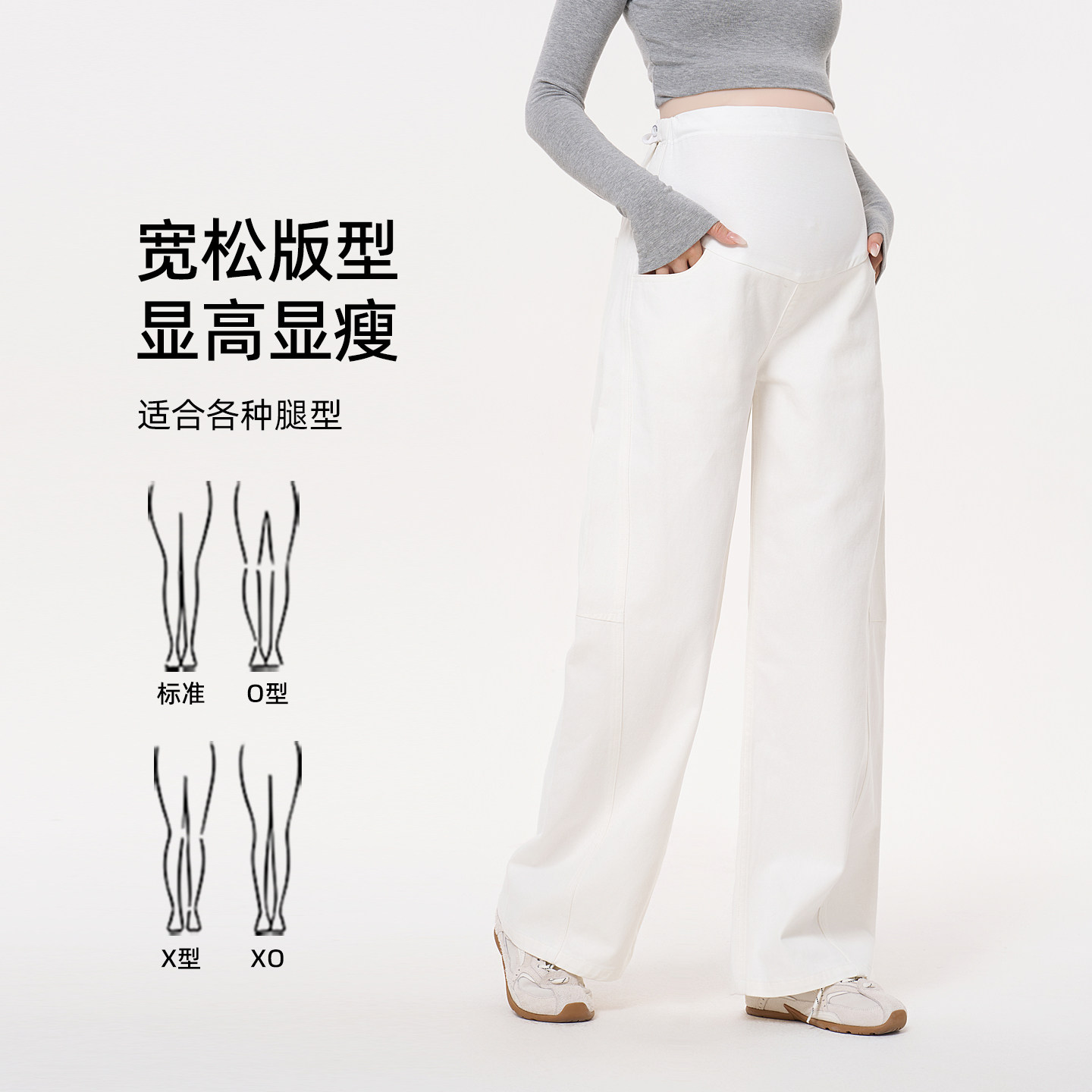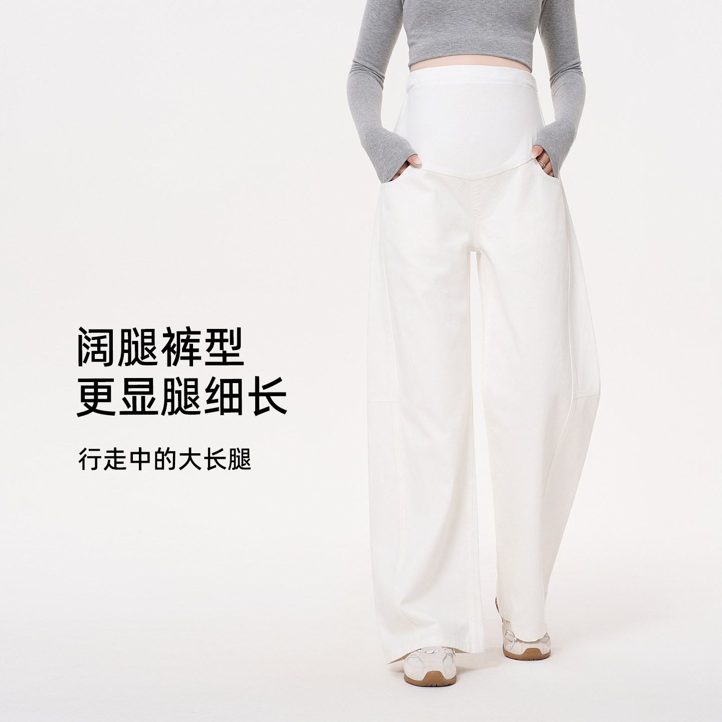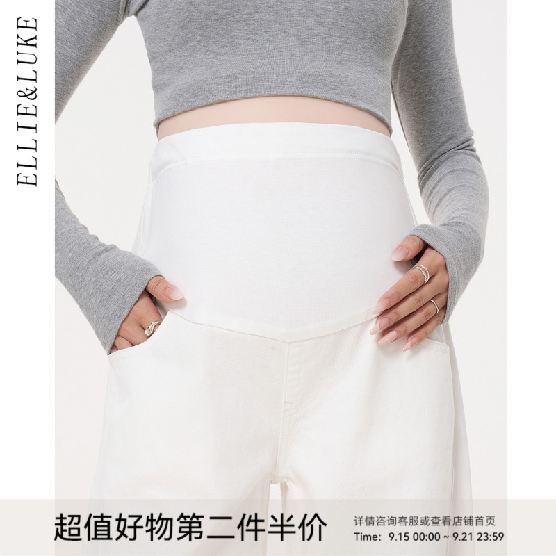ellieluke孕妇阔腿裤秋季外穿托腹白色裤子不勒肚子休闲直筒长裤