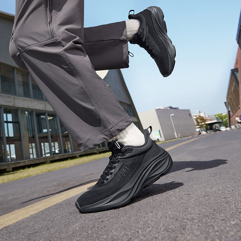 鸿星尔克全黑色男鞋秋冬新款休闲鞋公务通勤跑步鞋防滑软底运动鞋