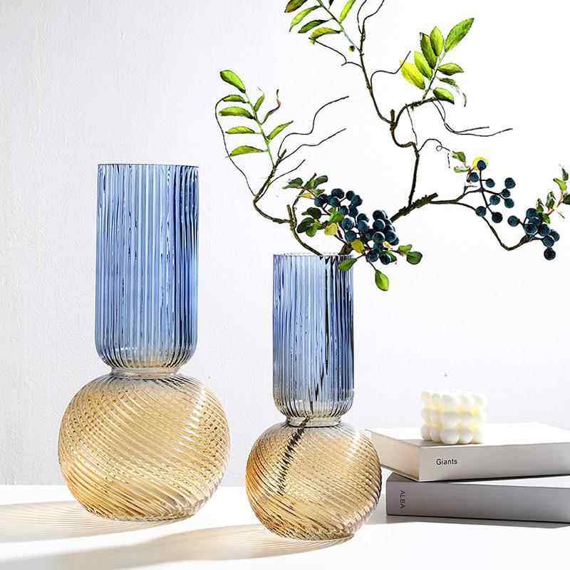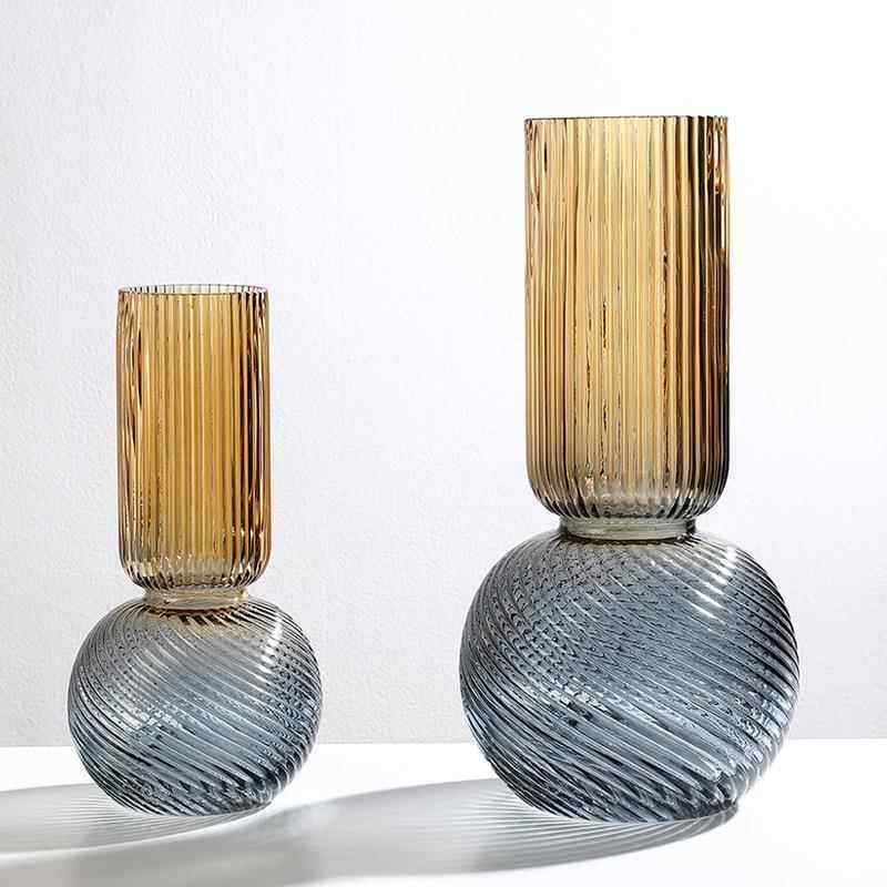 简约创意双色玻璃花瓶玻璃花瓶手工意大利设计插花摆件软装饰品