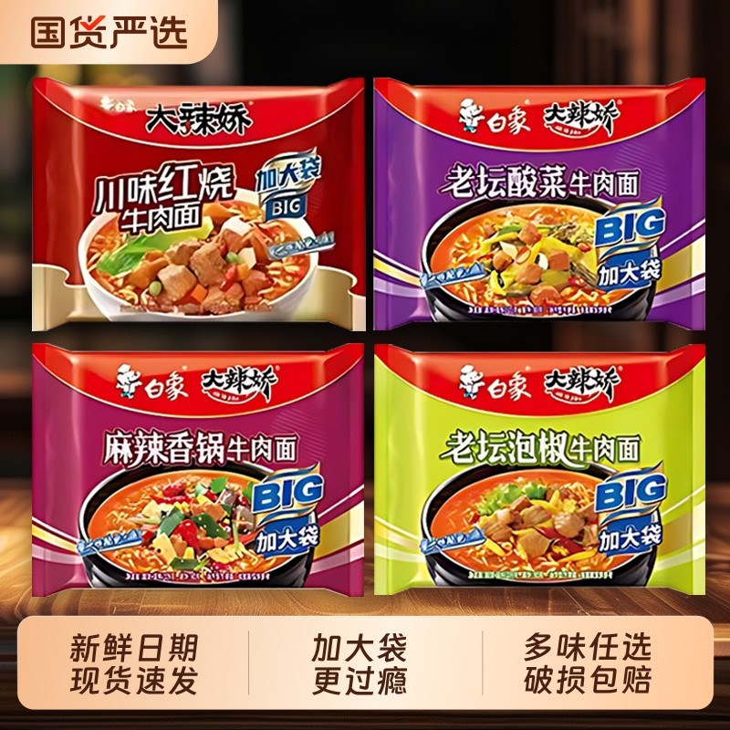 白象麻辣香锅方便面大辣娇袋BIG袋老坛酸菜泡椒牛肉泡面整箱香辣